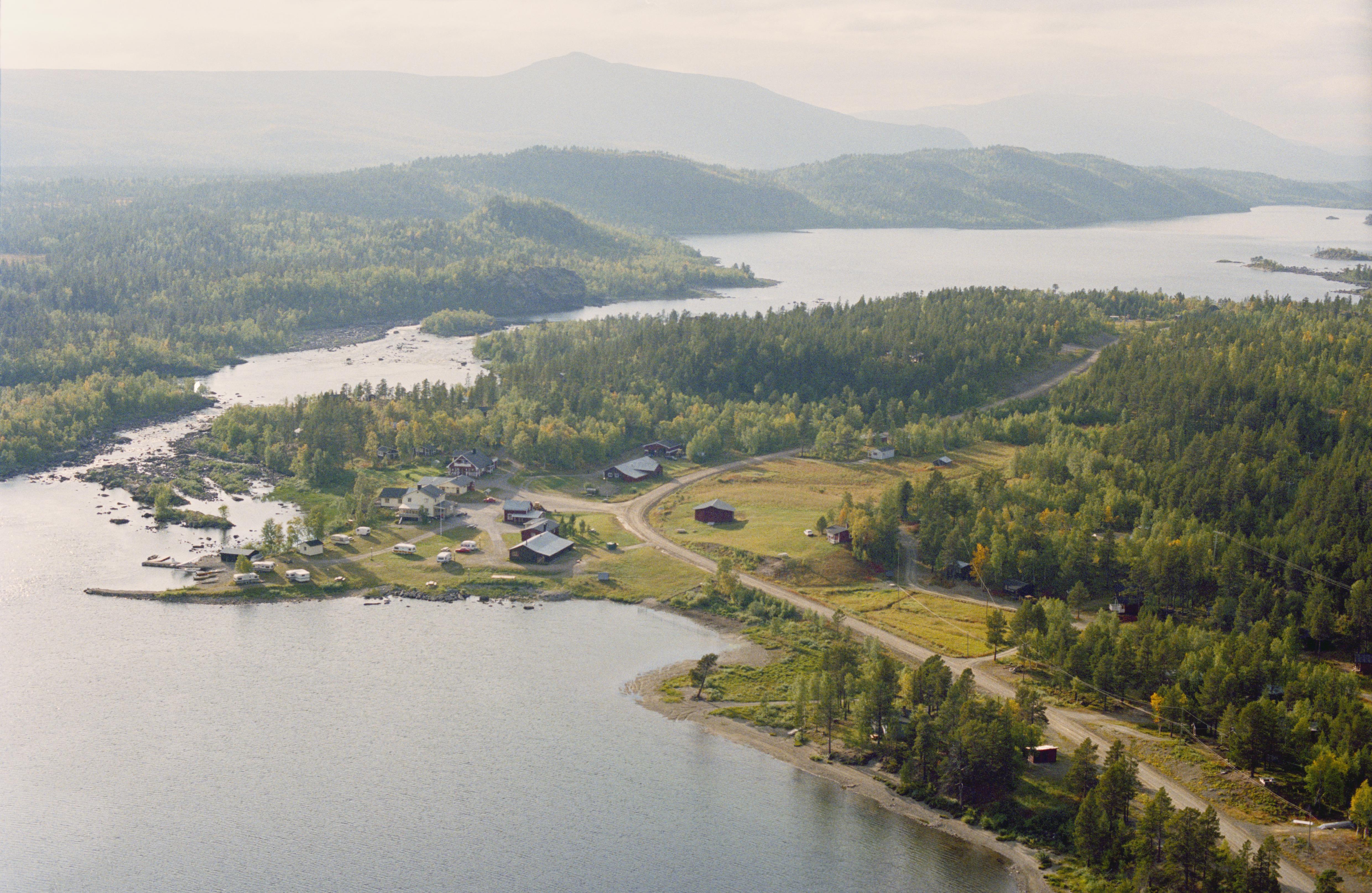 Beskrivning: Gautosjö (Gávtto) by vid Laisälven (Lájsso) mellan sjöarna Mittisjön (Gasskajávrre) i bildens övre del och Gautosjön (Gávttojávrre / Gautojaure). Vid campingplatsen i bildens mitt boplatser RAÄnr Arjeplog 553:1 och 554:1. Bilden är tagen mot (väderstreck): V
