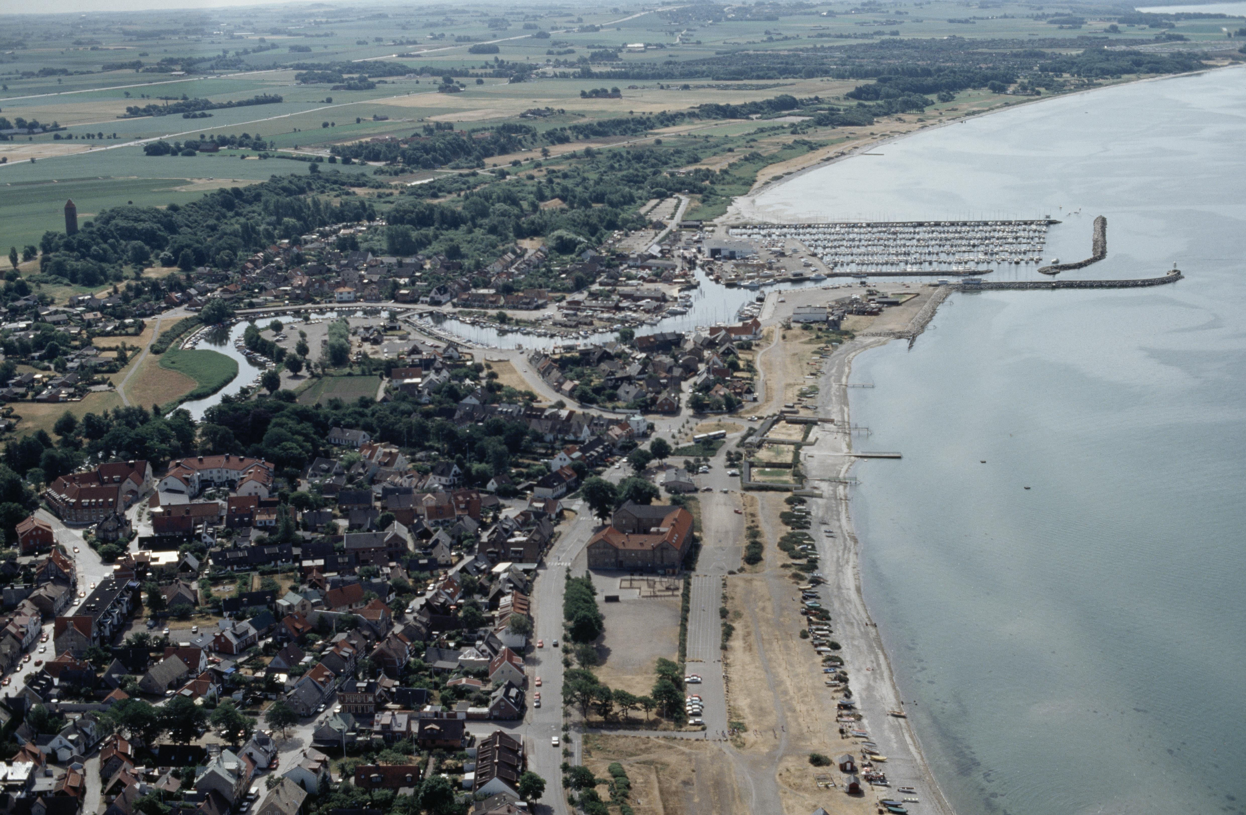 Beskrivning: (Tidigare Raus socken). Råå hamn, Campingplats, badplats. Råå vallar RAÄnr Helsingborg 92:1vid stranden. I bildens mitt Råå-åns utflöde i Öresund. Bilden är tagen mot (väderstreck): SO