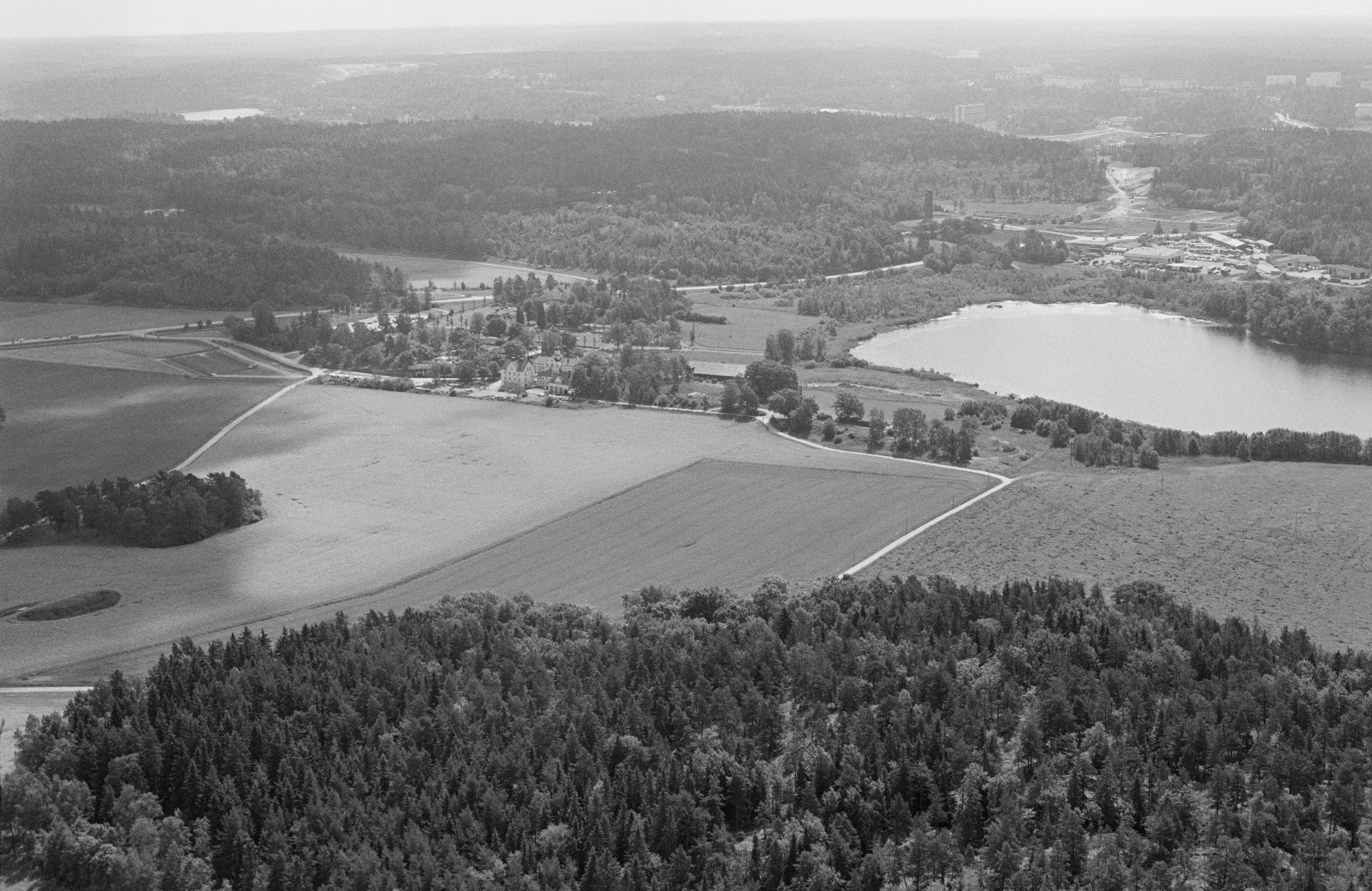 Beskrivning: I bildens nedre del området vid Skrävsta herrgård med Skrävsta gamla tomt RAÄnr Botkyrka 101:1 m.fl. Vid bildens mitt Hågelby herrgård vid sjön Aspen. Bilden är tagen mot (väderstreck): SO