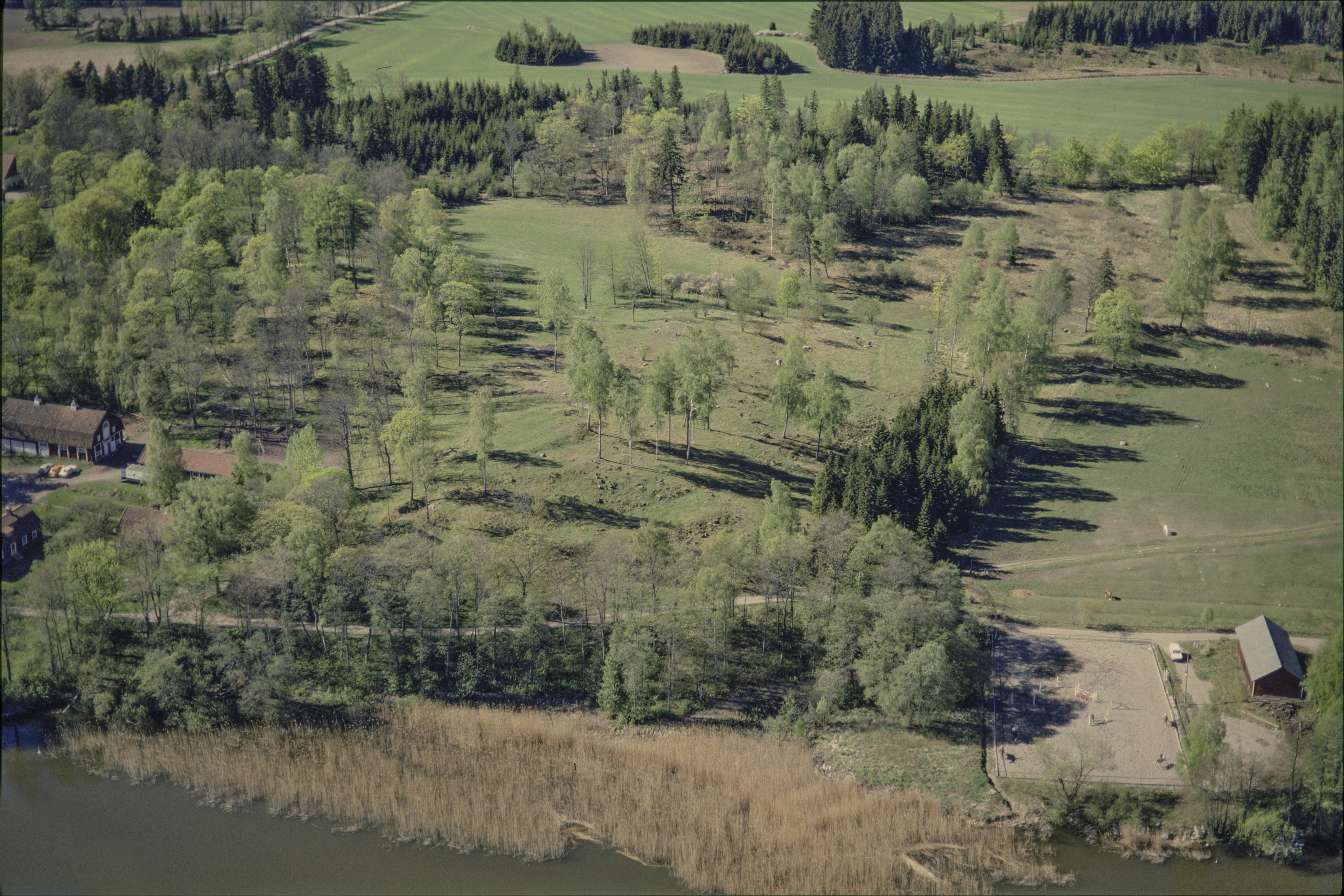 Beskrivning: Signhildsbergs kungsgård vid Håtunaviken i Mälaren. I området husgrund Fornsigtuna RAÄnr Håtuna 101:1, gravfält Håtuna 99:1 m.fl. I bildens mitt tegelindustri Håtuna 122:1. Bilden är tagen mot (väderstreck): SV