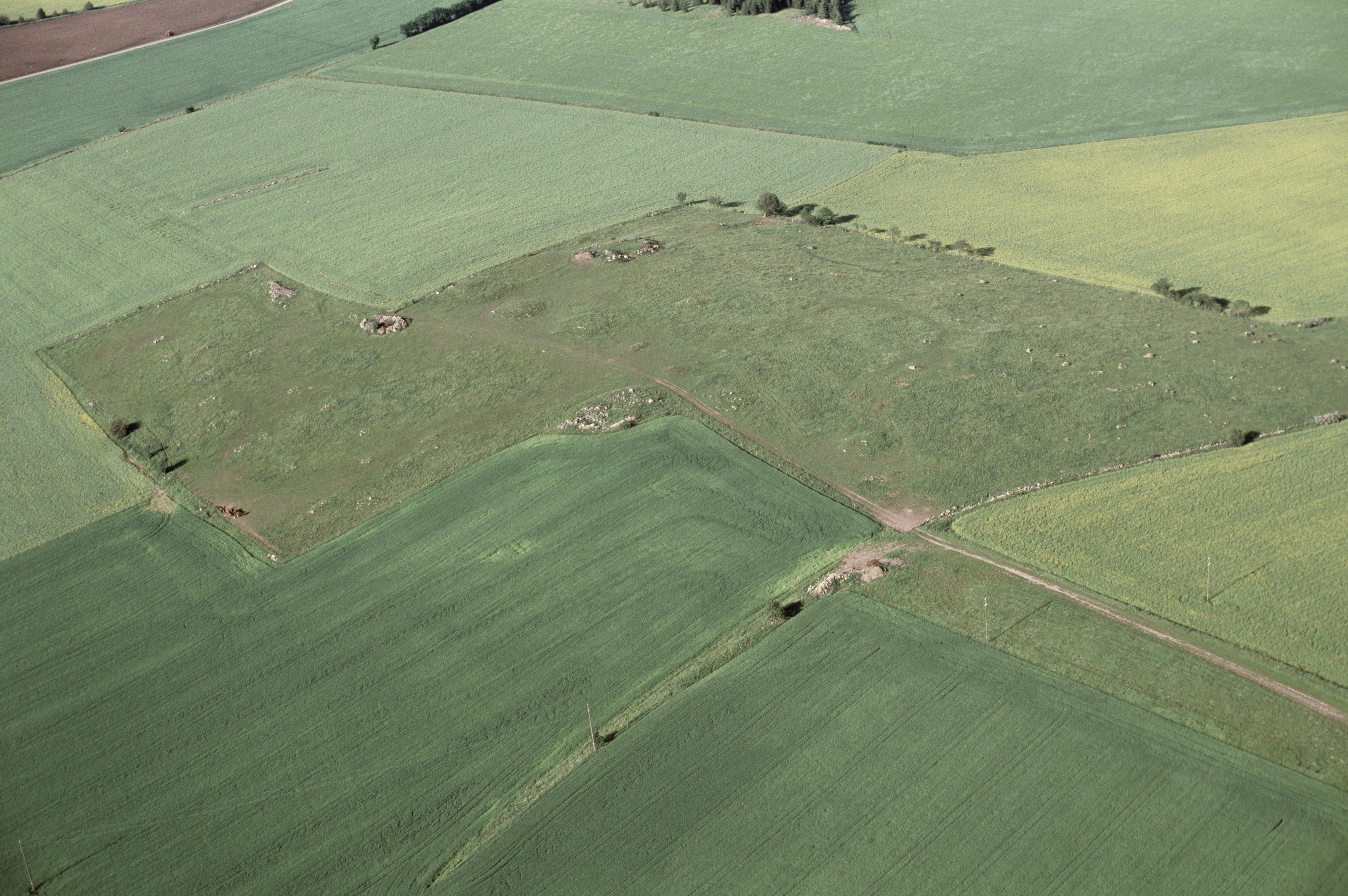 Beskrivning: Hästbetat gravfält. Fornlämningsområde vid Högby och Knivinge. Gravfält RAÄnr Vreta kloster 18:1 m.fl. Bilden är tagen mot (väderstreck): Ö