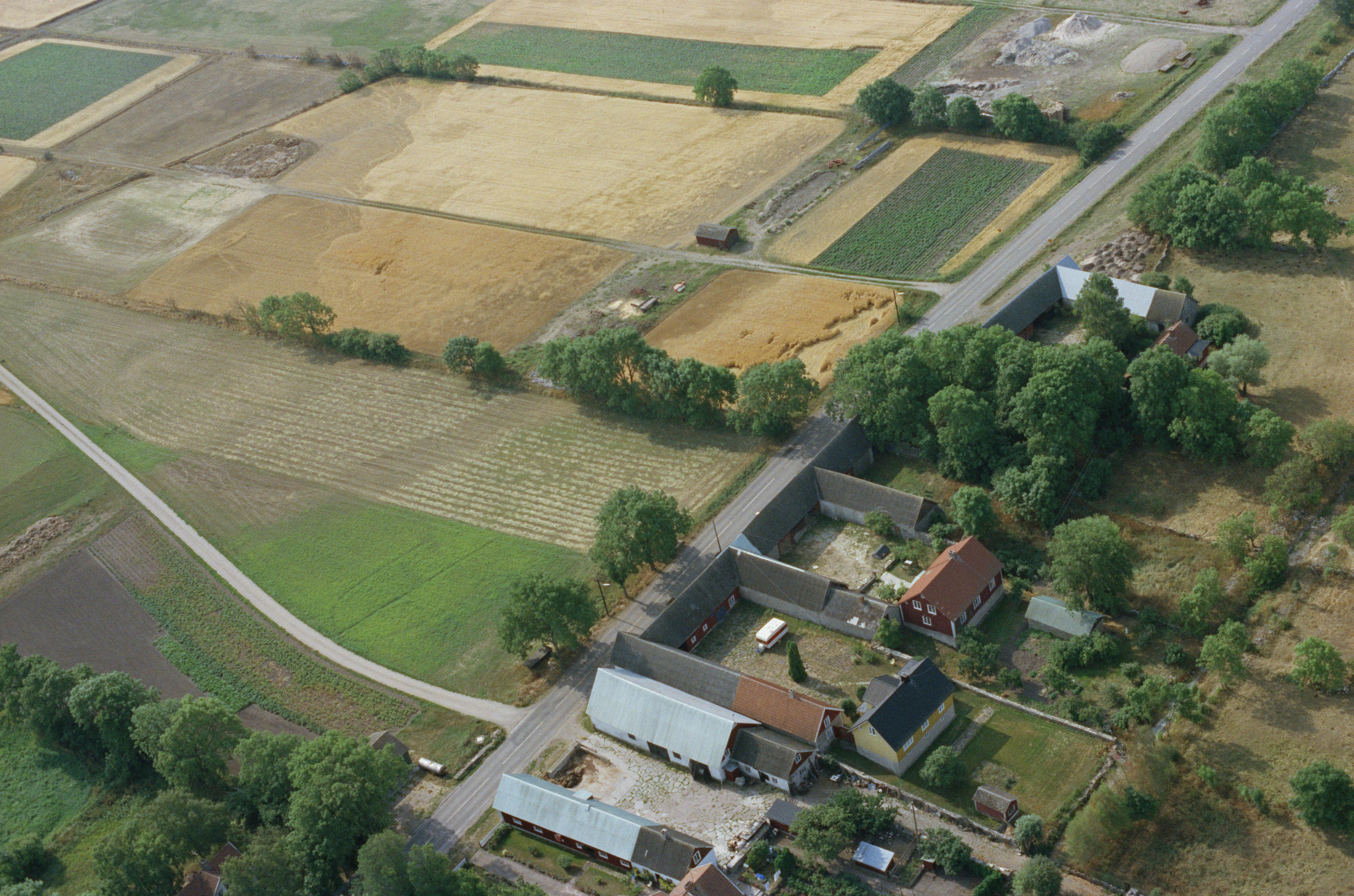 Beskrivning: Södra Kvinneby. Vid bildens mitt fyndplats (ask och fingerring av brons) RAÄnr Stenåsa 102:1. Bilden är tagen mot (väderstreck): SO