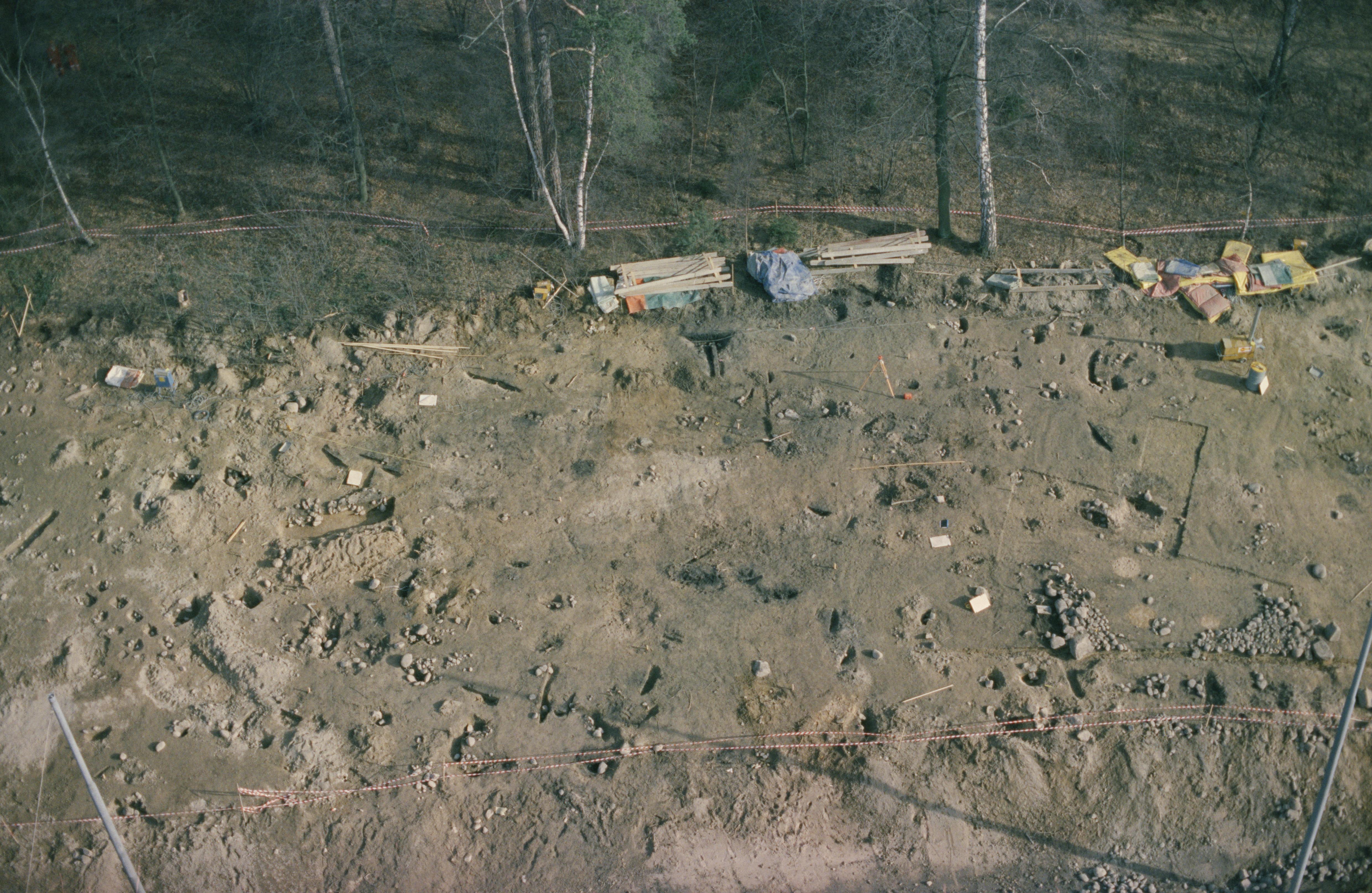 Beskrivning: Arkeologisk undersökning vid väg E4 mellan Norra begravningsplatsen och Hagaparken. Boplats RAÄnr Solna 85:1. Bilden är tagen mot (väderstreck): ONO