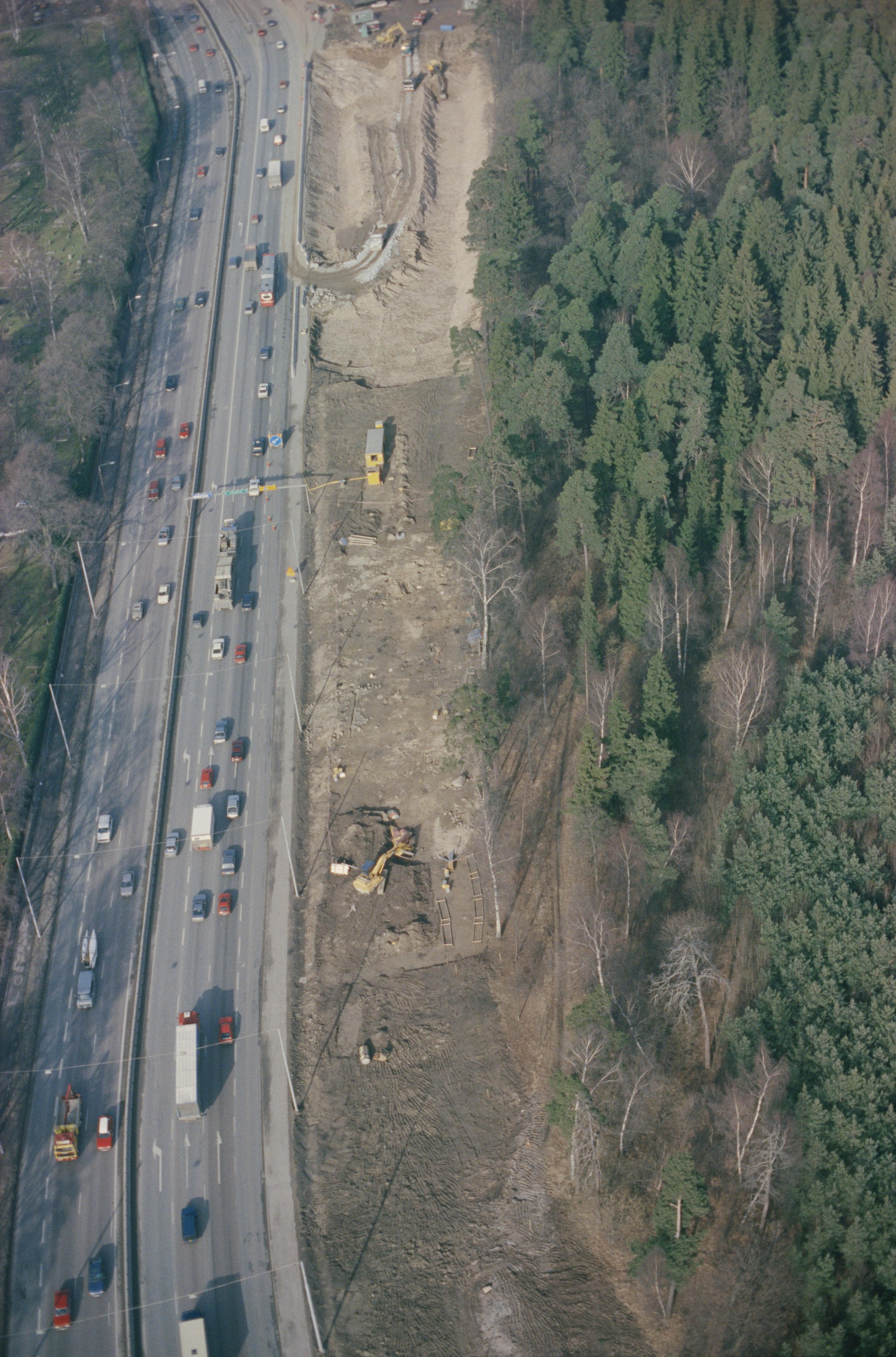 Beskrivning: Arkeologisk undersökning vid väg E4 mellan Norra begravningsplatsen och Hagaparken. Boplats RAÄnr Solna 85:1. Bilden är tagen mot (väderstreck): NV