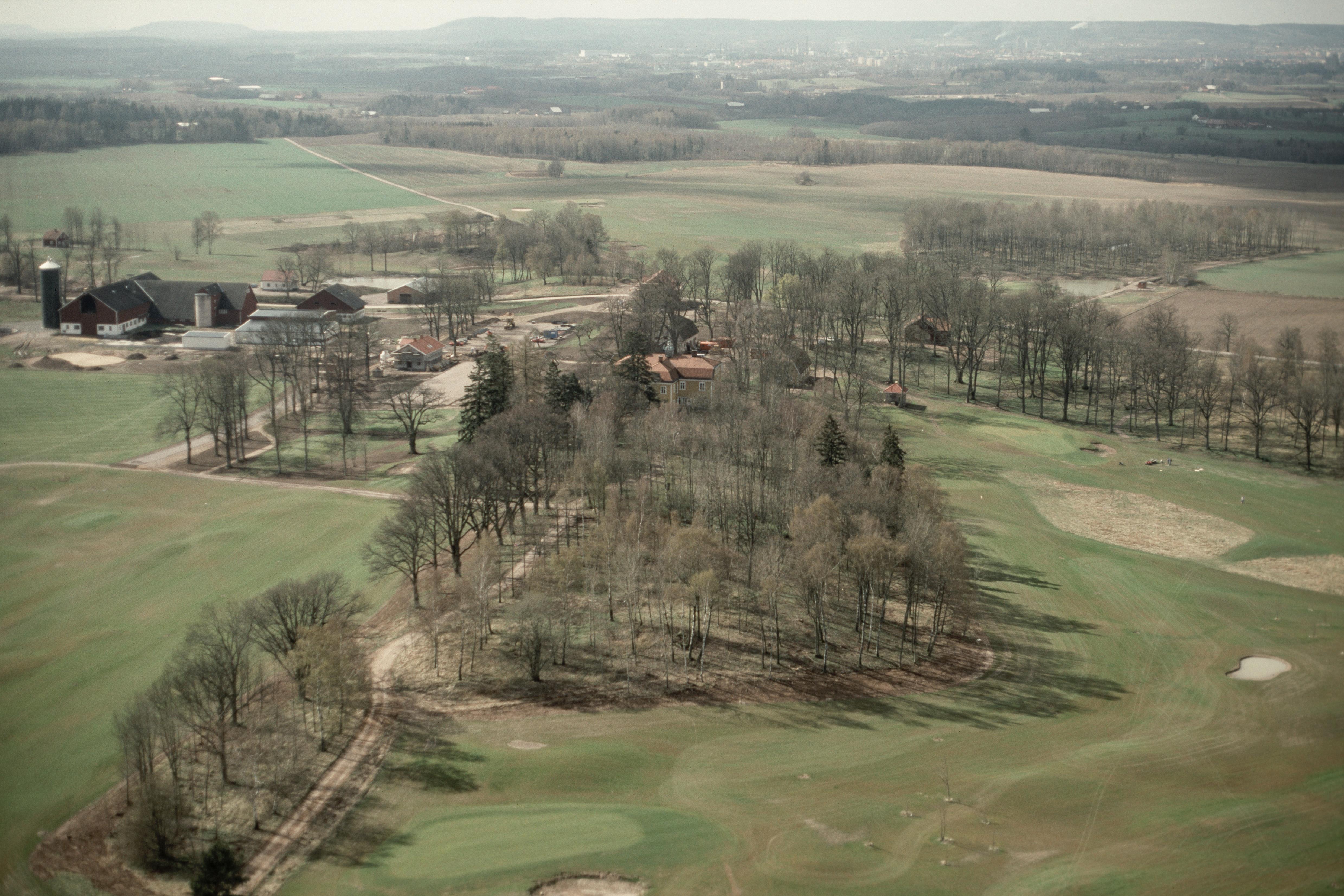 Beskrivning: Knistads herrgård. Knistads golfbana. I området torp RAÄnr Sventorp 90:1, hög Sventorp 13:1, stensättning Sventorp 14:1, fyndplats Sventorp 92:1 m.fl. Bilden är tagen mot (väderstreck): SV