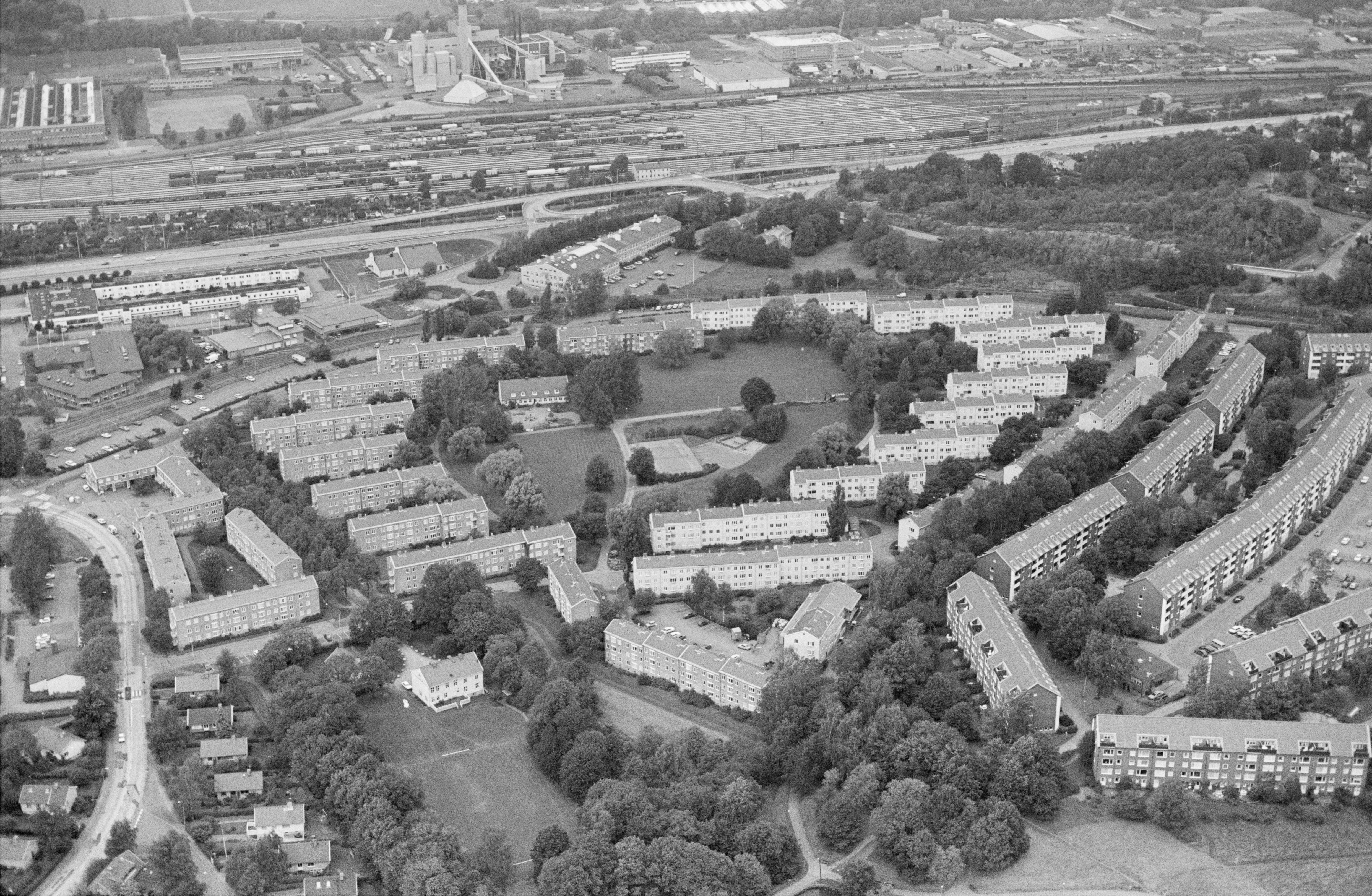 Beskrivning: Anmärkning (övrig): Riksintresse-nr/namn: O2:9 - Västra Torpa. Socken: Göteborg. Motivering: Bostadsområde med flerbostadshus som är ett av de första där 1940-talets bostadssociala program prövades och som visar på tidens stadsplanemässiga och arkitektoniska idéer. - Uttryck för riksintresset: Planläggning och bebyggelsen från 1946, med integrerad manbyggnad och allé tillhörande Vidkärrs gård. Runt detta en ring av gator och öst-västligt orienterade trevåniga lamellhus inbäddade i grönska. Den enhetligt utformade bebyggelsen med fasader i gult tegel eller grov spritputs, präglade av traditionellt hantverk i detaljer som portaler, burspråk och takfot. Till området hör både ett litet köpcentrum, Kaggeledstorget,(…) Texten i detta fält har förkortats vid migrering till e-arkivet. Se filbilagan extra.xml för fullständig information under note_archivist. Beskrivning: Västra Torpa bostadsområde i stadsdelen Sävenäs, Göteborg. Bilden är tagen mot (väderstreck): N Fotosyfte: Flygbildsdokumentation