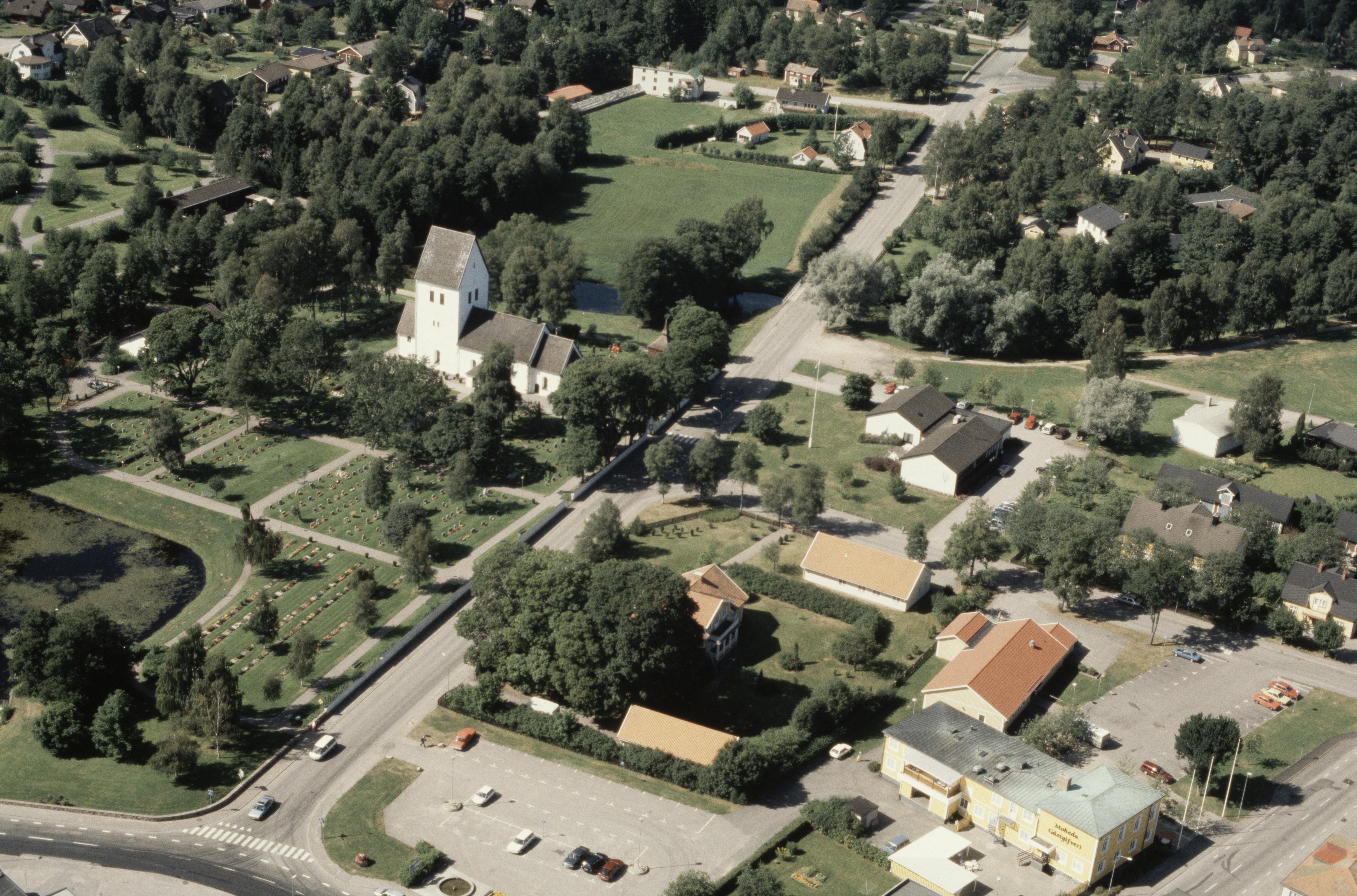 Beskrivning: Moheda tätort. Moheda kyrka. Bilden är tagen mot (väderstreck): NV