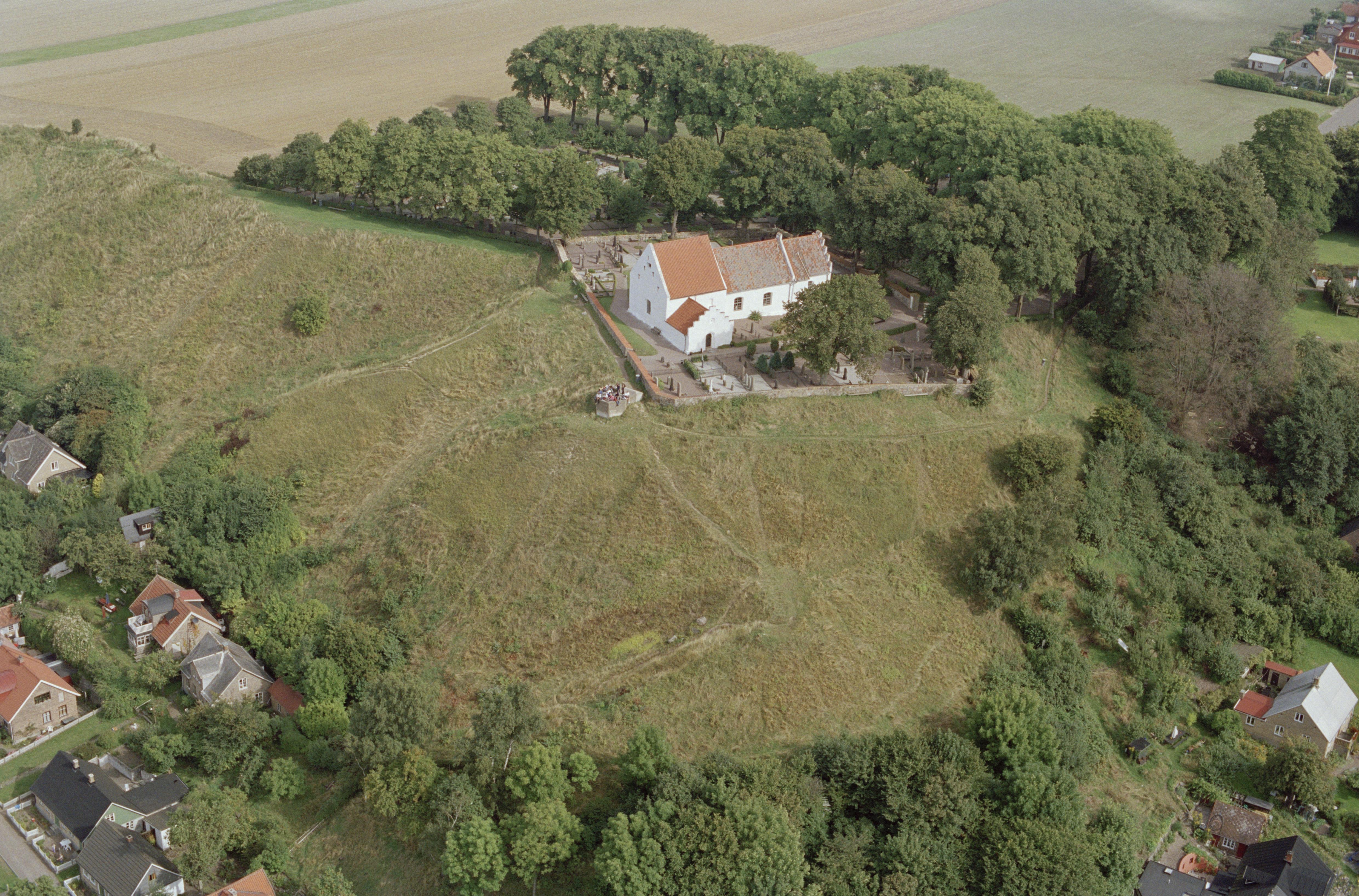 Beskrivning: Fiskeläget Kyrkbacken. Sankt Ibbs gamla kyrka. Bilden är tagen mot (väderstreck): N