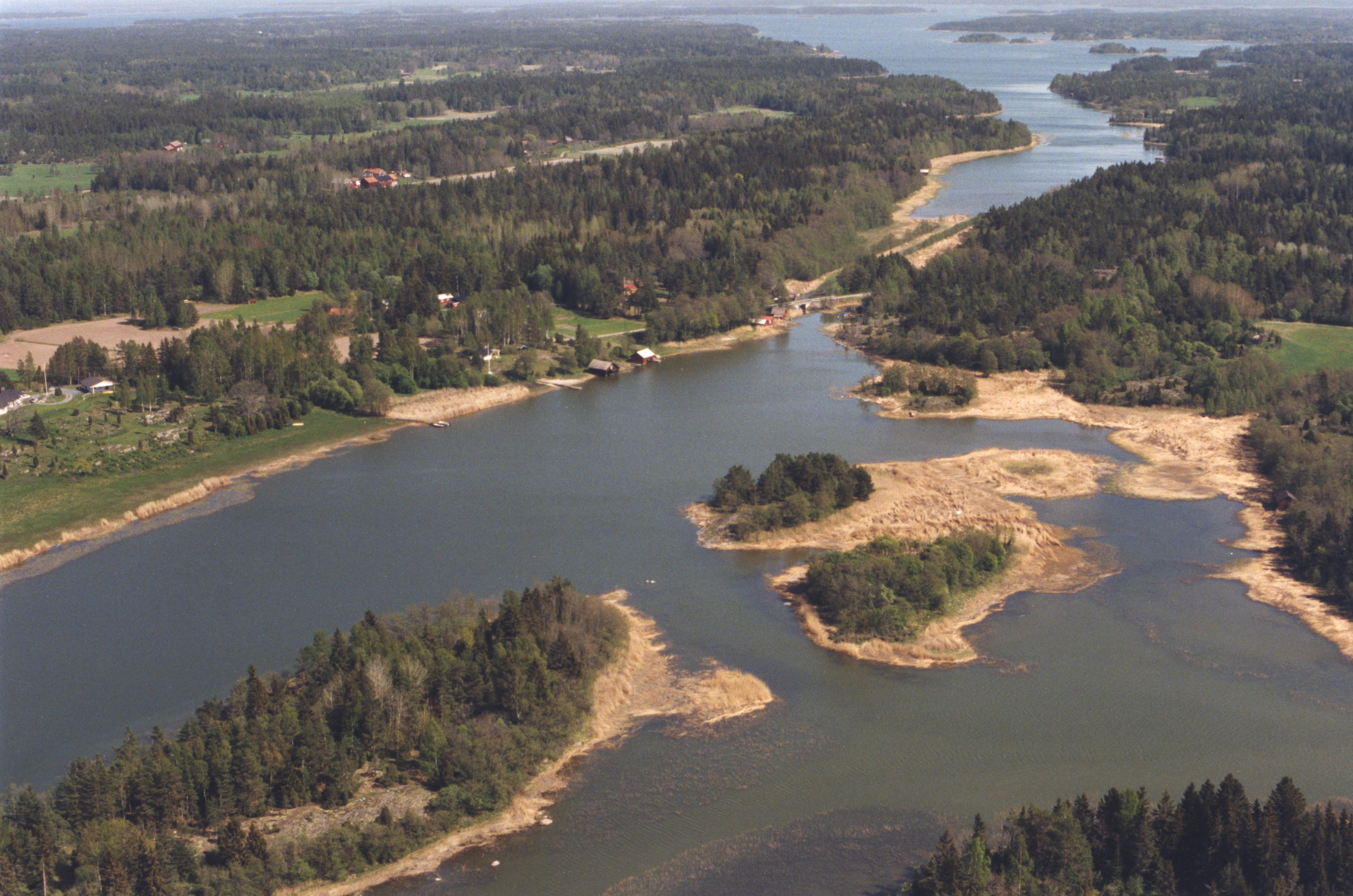 Beskrivning: Östhammarsfjärden mot Raggaröfjärden. Söderön till vänster och Tvärnö uppe till höger. Till vänster Tuskö by. Över bildens mitt Gruvskäret i Tuskösundet med gruvområde RAÄnr Börstil 256:1. Hargs socken i bildens övre del till höger. Bilden är tagen mot (väderstreck): OSO