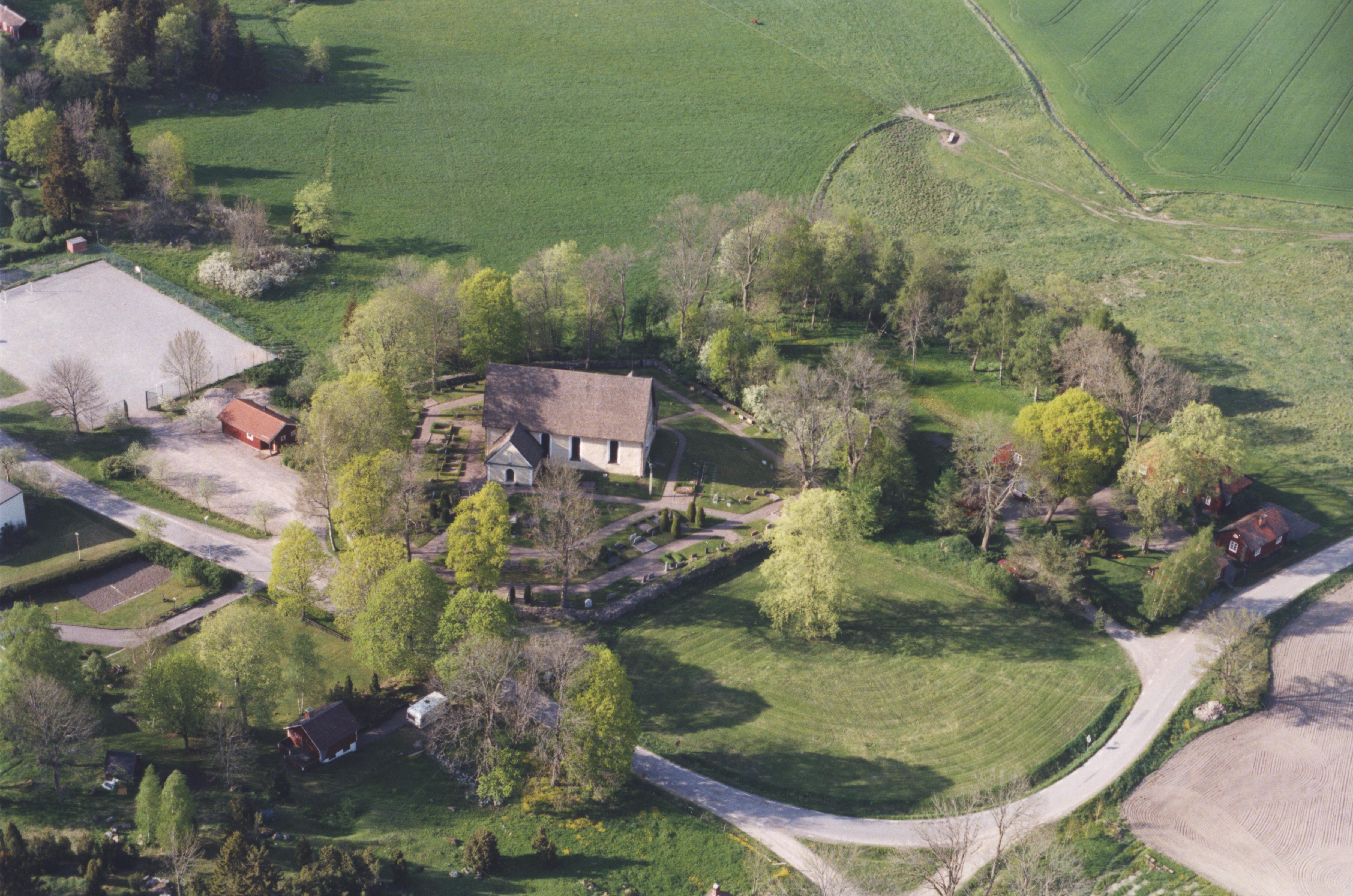 Beskrivning: Lagga kyrka och kyrkby, Bilden är tagen mot (väderstreck): NNV