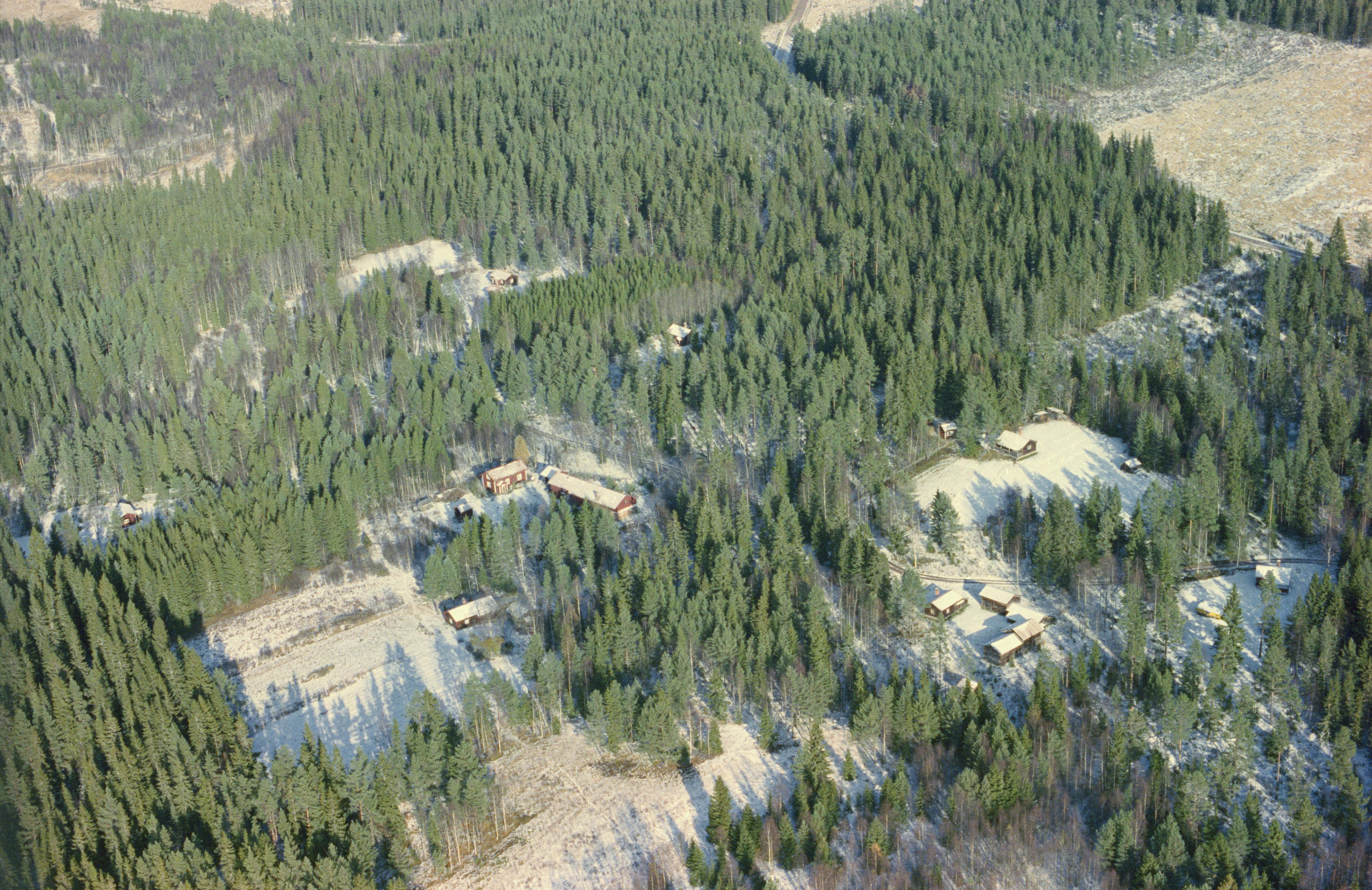 Beskrivning: Björntjärnsbäckens dalgång. Dammskogs fäbodmiljö RAÄnr Leksand 682:1-4. I bildens övre kant södra delen av byn Skallskog. Bilden är tagen mot (väderstreck): NO