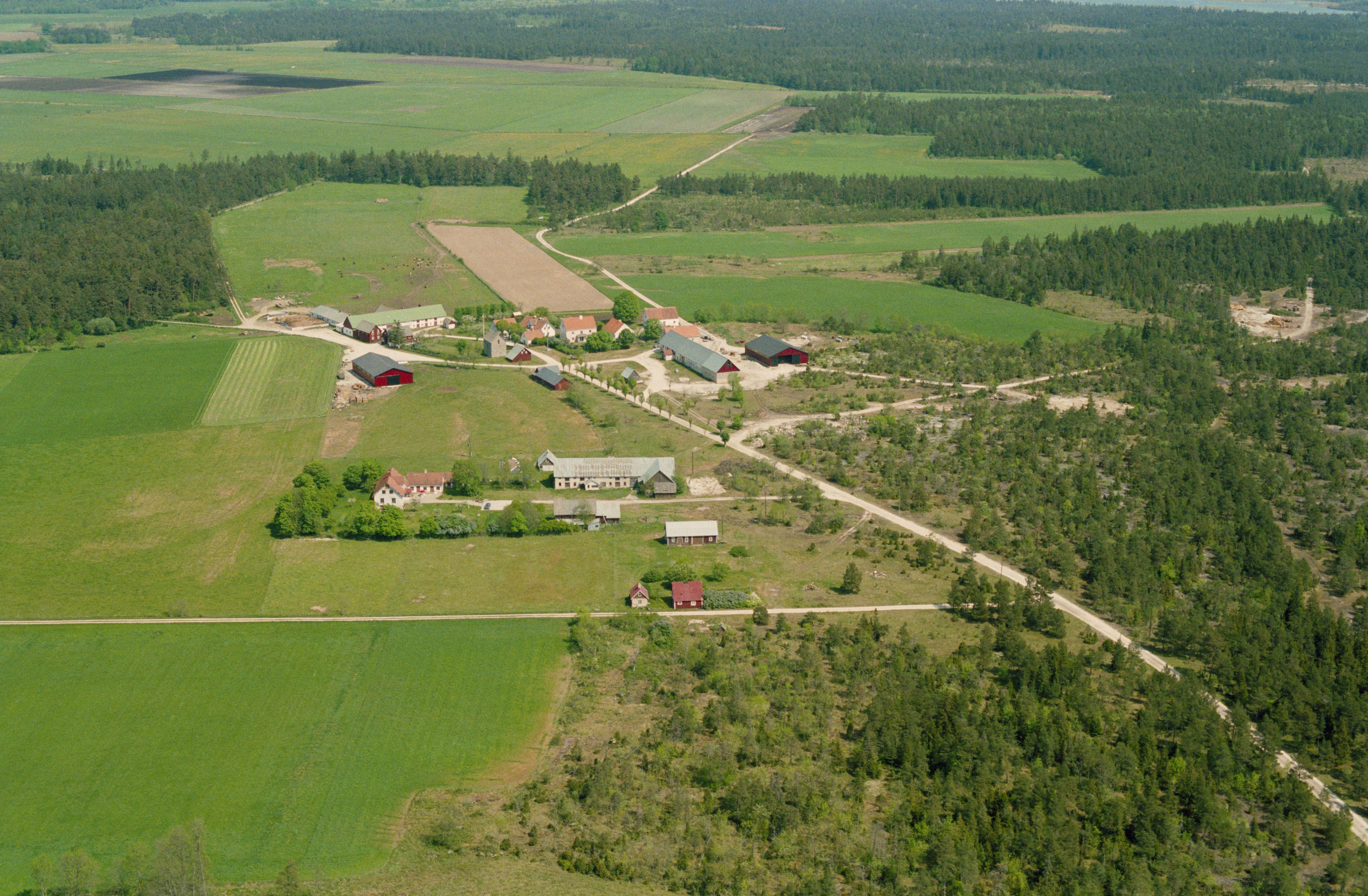 Beskrivning: Byggnadsminnet Lauks gård. Vid gården husgrund RAÄnr Lokrume 56:2. I skogen nere till höger en tjärdal RAÄnr Lokrume 76:1. Bilden är tagen mot (väderstreck): NO