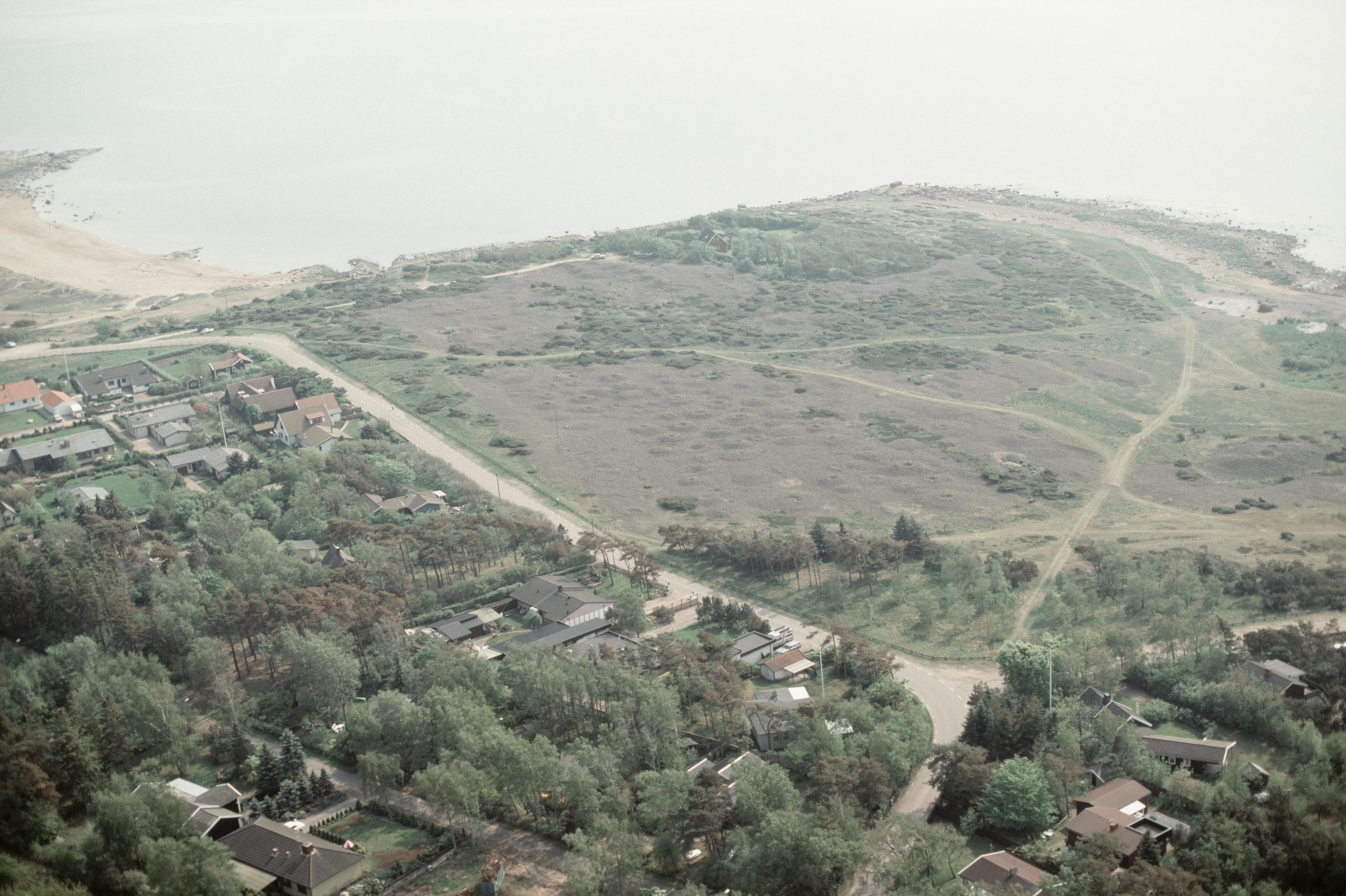 Beskrivning: Påarps tätort. Gravfält "Sänke hög" RAÄnr Trönninge 9:1 vid bildens mitt. Bilden är tagen mot (väderstreck): SV