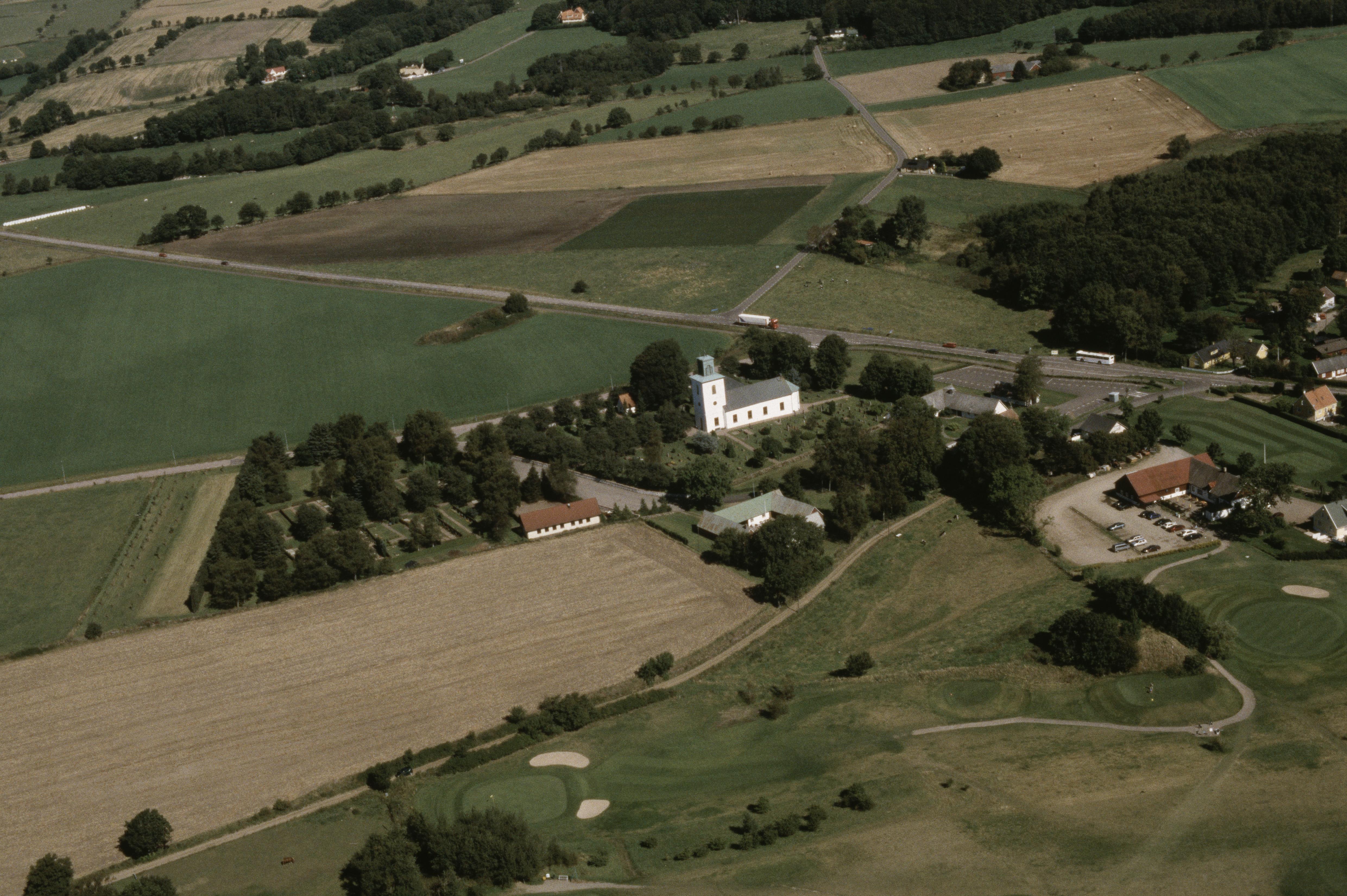 Beskrivning: Grevie kyrka och kyrkby. Bilden är tagen mot (väderstreck): NO