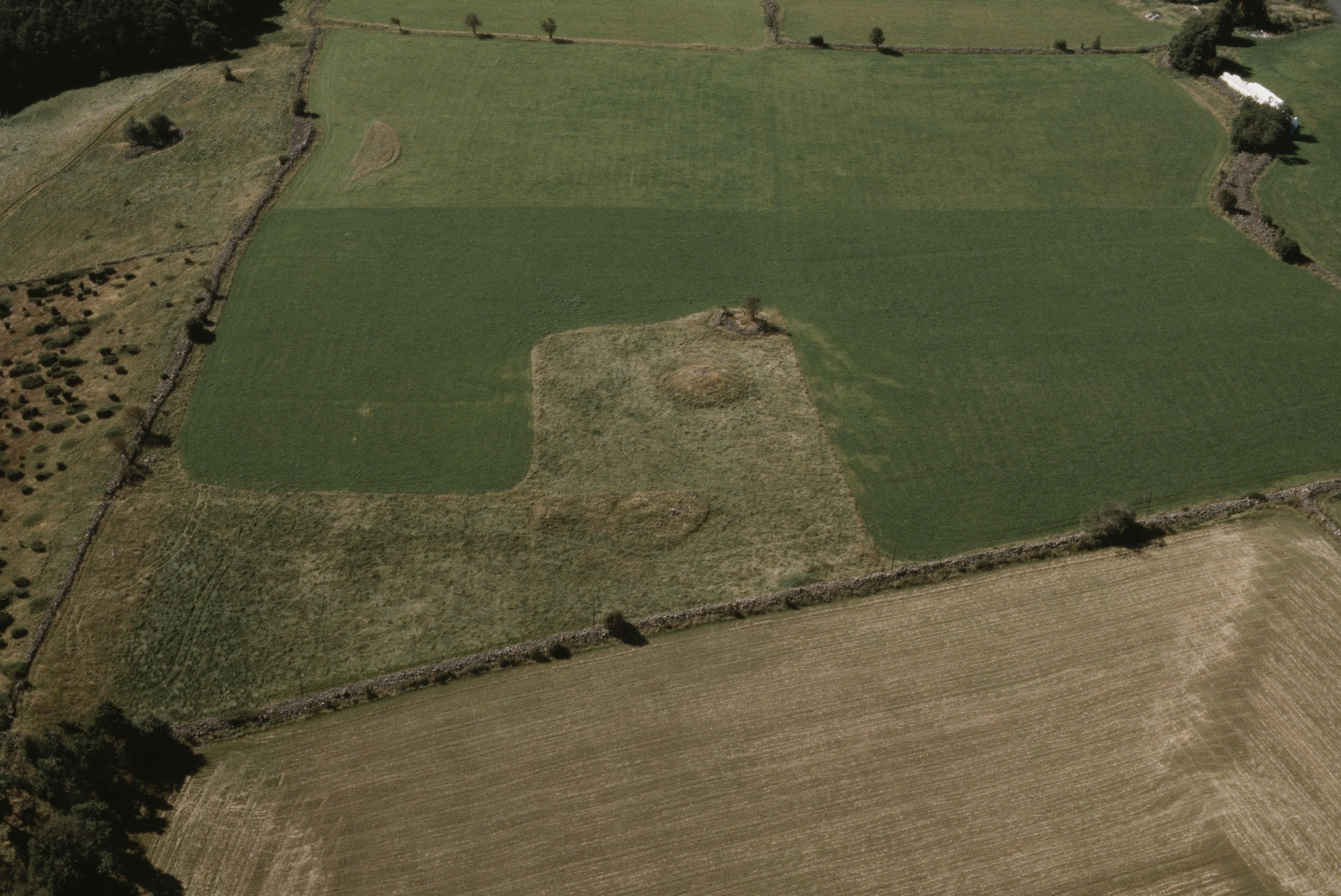 Beskrivning: Gravfält RAÄnr Grevie 54:1 och gravhög Långabjärshögen RAÄnr Grevie 119:1 vid gränsen till socknet Västra Karup (i bildens nedre del). Bilden är tagen mot (väderstreck): SV