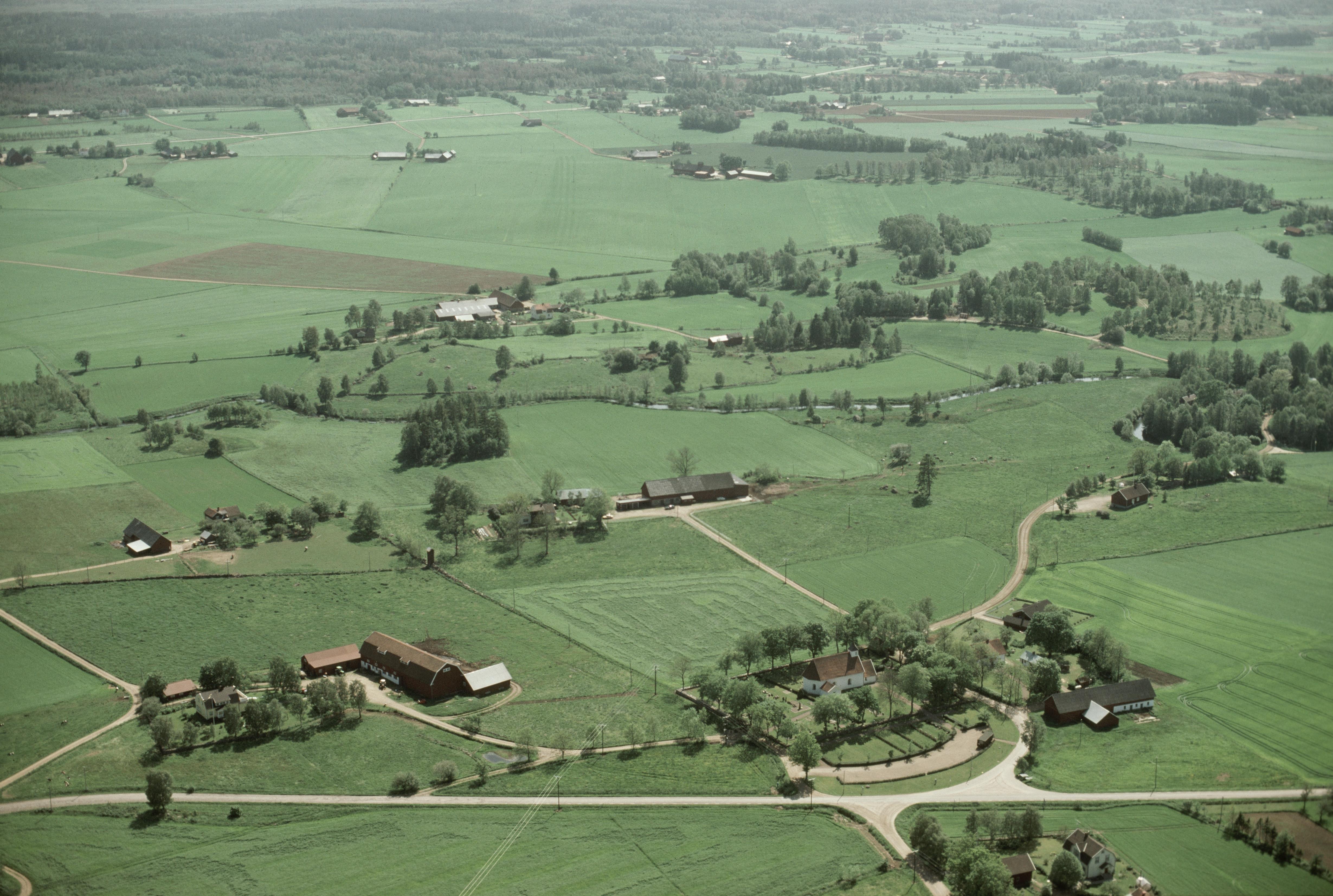 Beskrivning: Fölene kyrka nere till höger. Mossagården och ån Nossan vid bildens mitt. Bilden är tagen mot (väderstreck): SSV