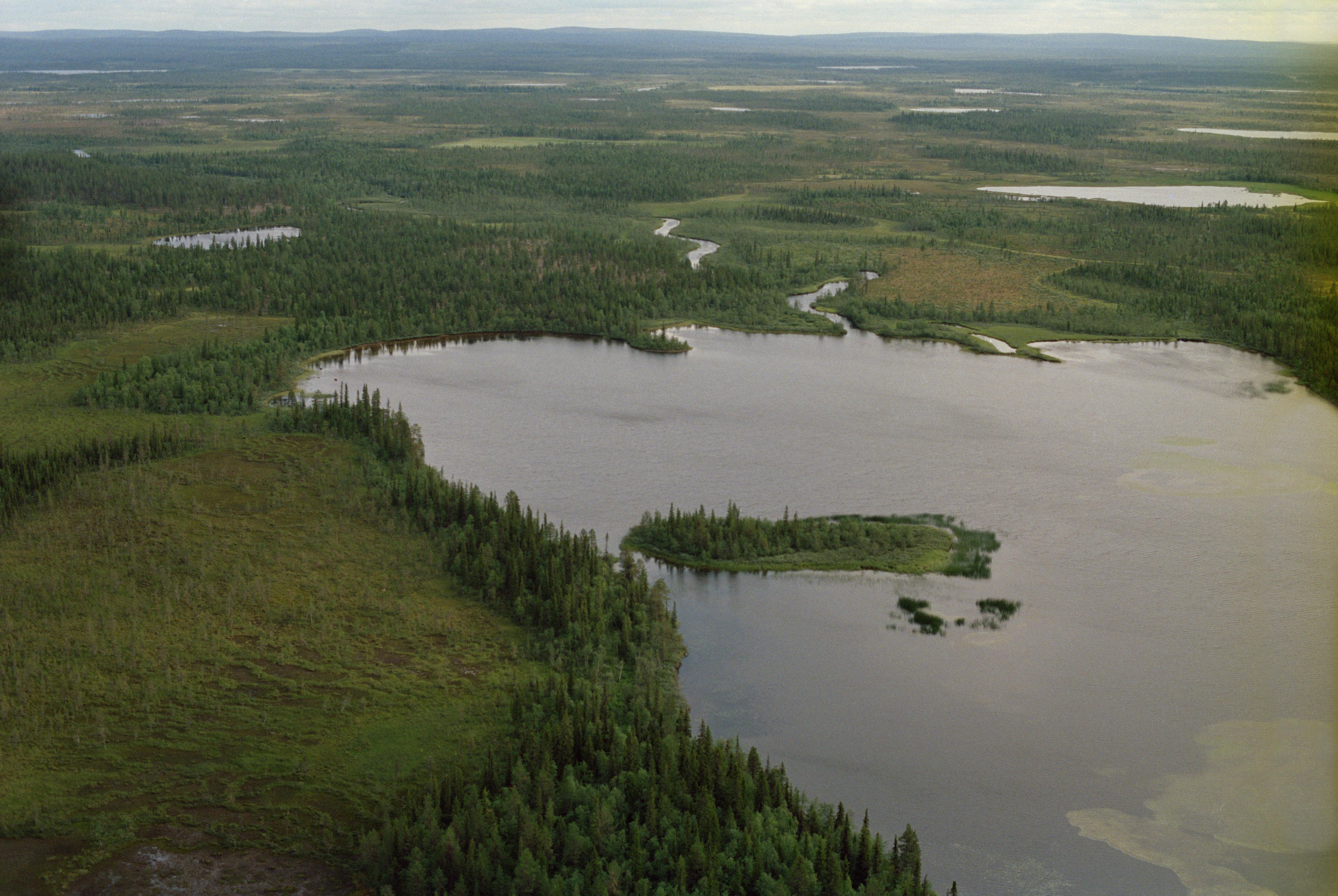 Beskrivning: Området Vaikkolompolo (Vaihkolompolo) vid sjön Vaikkojärvi (Vaihkojärvi) och ån Vaikkijoki (Vaihkojoki). Vid ån i bildens övre del boplats RAÄnr Jukkasjärvi 20:1-3, 754:1-3, 747:1, fångstgrop / härd Jukkasjärvi 19:1-2, m.m. Bilden är tagen mot (väderstreck): N