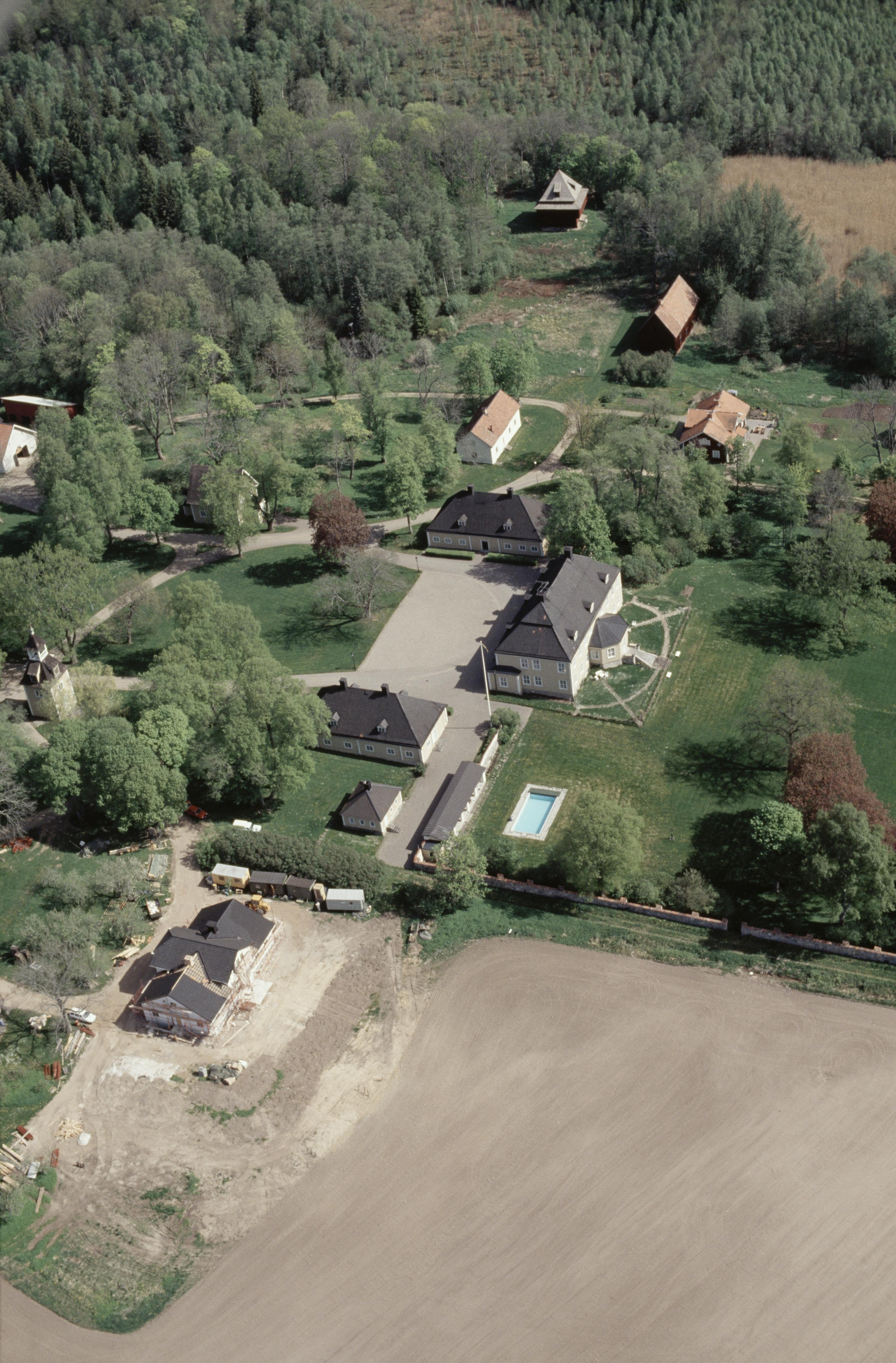 Beskrivning: Bystads herrgård fastighet Bystad 1:7. Fatbursbyggnad i bildens övre del. Bilden är tagen mot (väderstreck): NO