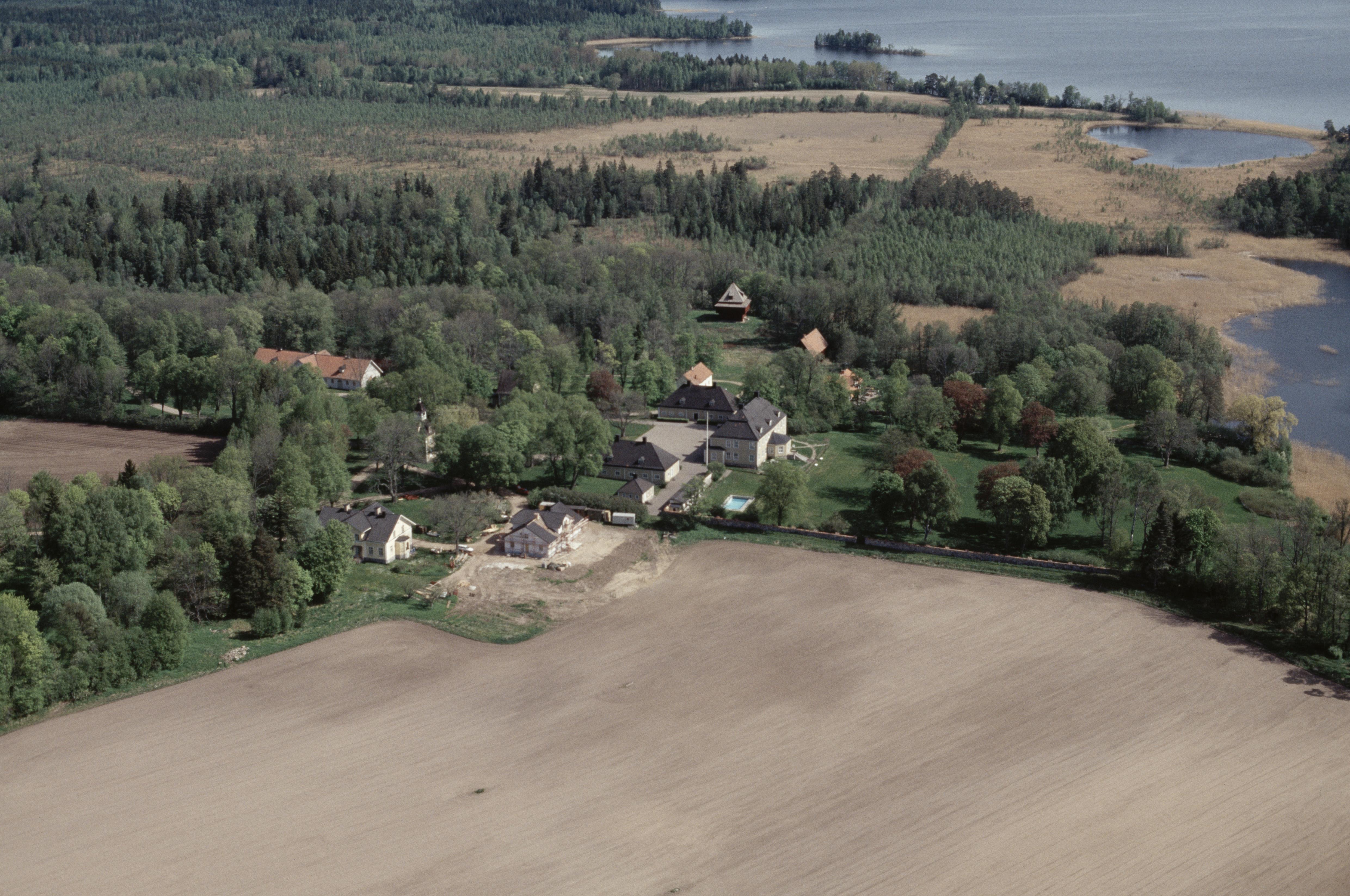 Beskrivning: Bystads herrgård fastighet Bystad 1:7 vid Bystadviken. Fatbursbyggnad över bildens mitt. Bilden är tagen mot (väderstreck): NO