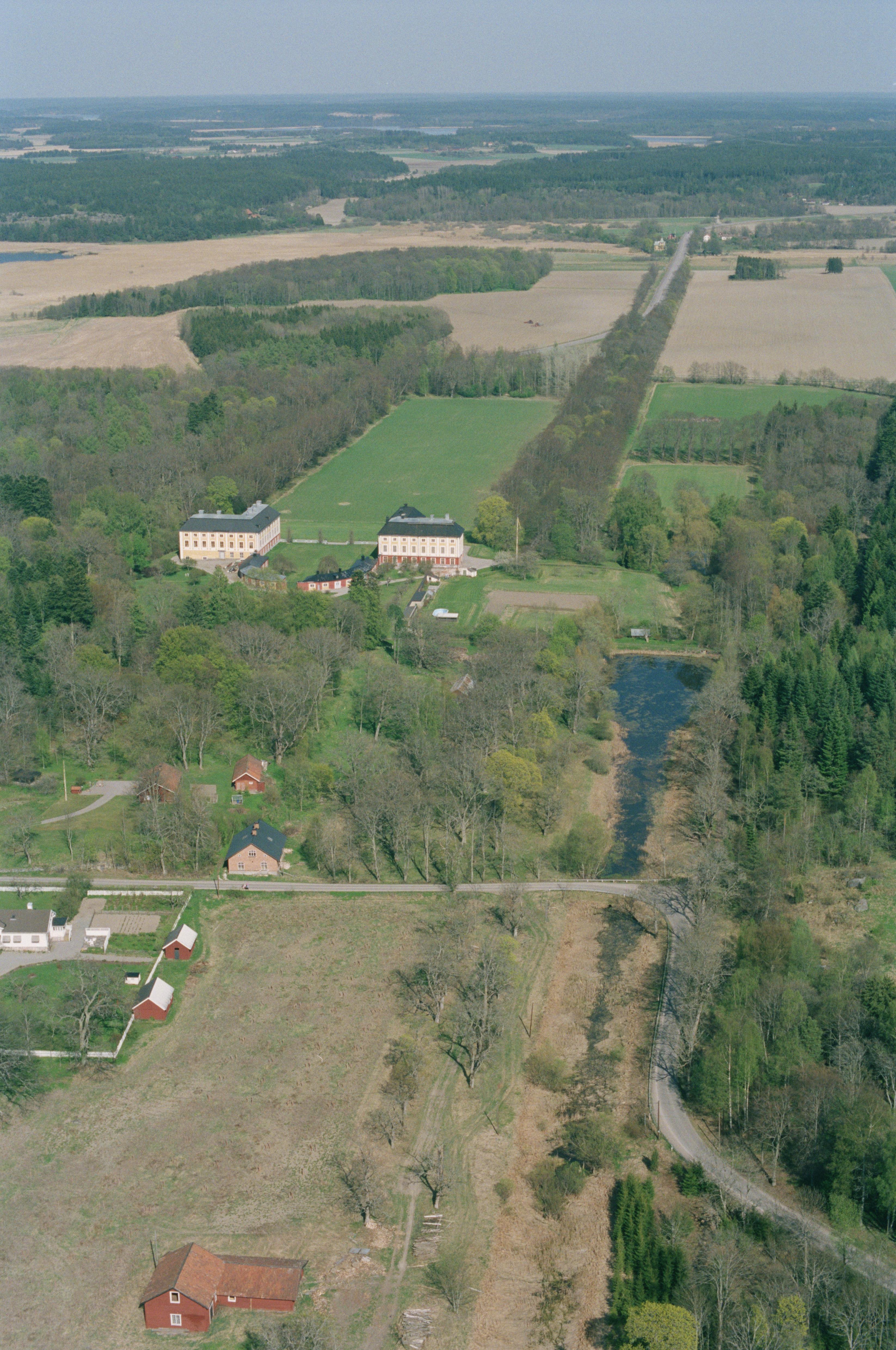 Beskrivning: Ekolsunds slott byggnadsminne RAÄnr Husby-Sjutolft 125:1. Hjälstaviken i bildens övre del. Bilden är tagen mot (väderstreck): ONO