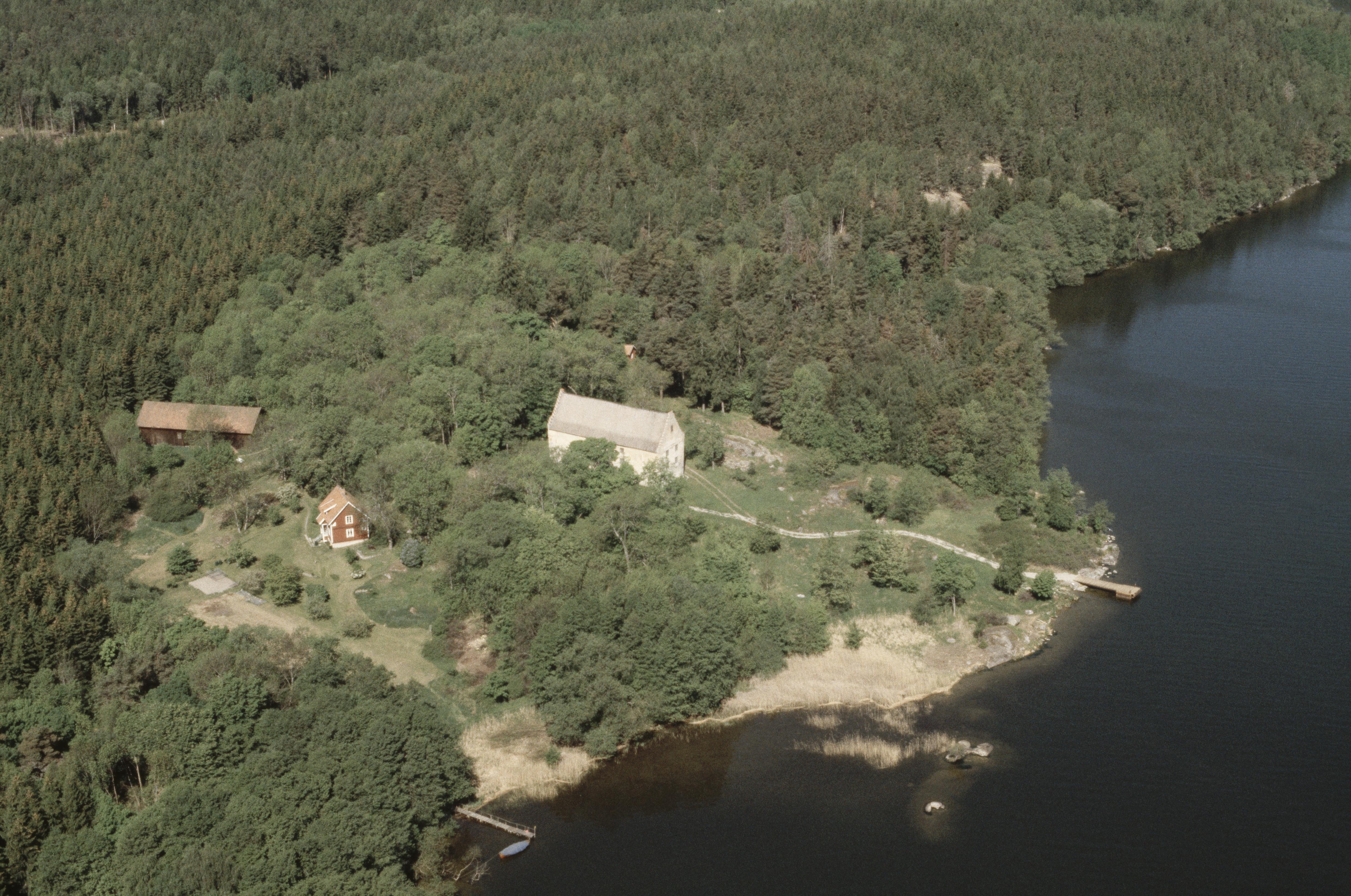 Beskrivning: Statligt byggnadsminne Utö hus RAÄnr Kungs-Husby 70:1 på Arnö vid Grönsösundet i Mälaren. Vid borgen magasin Kungs-Husby 75:1, gravfält Kungs-Husby 68:1 m.fl. Bilden är tagen mot (väderstreck): VNV