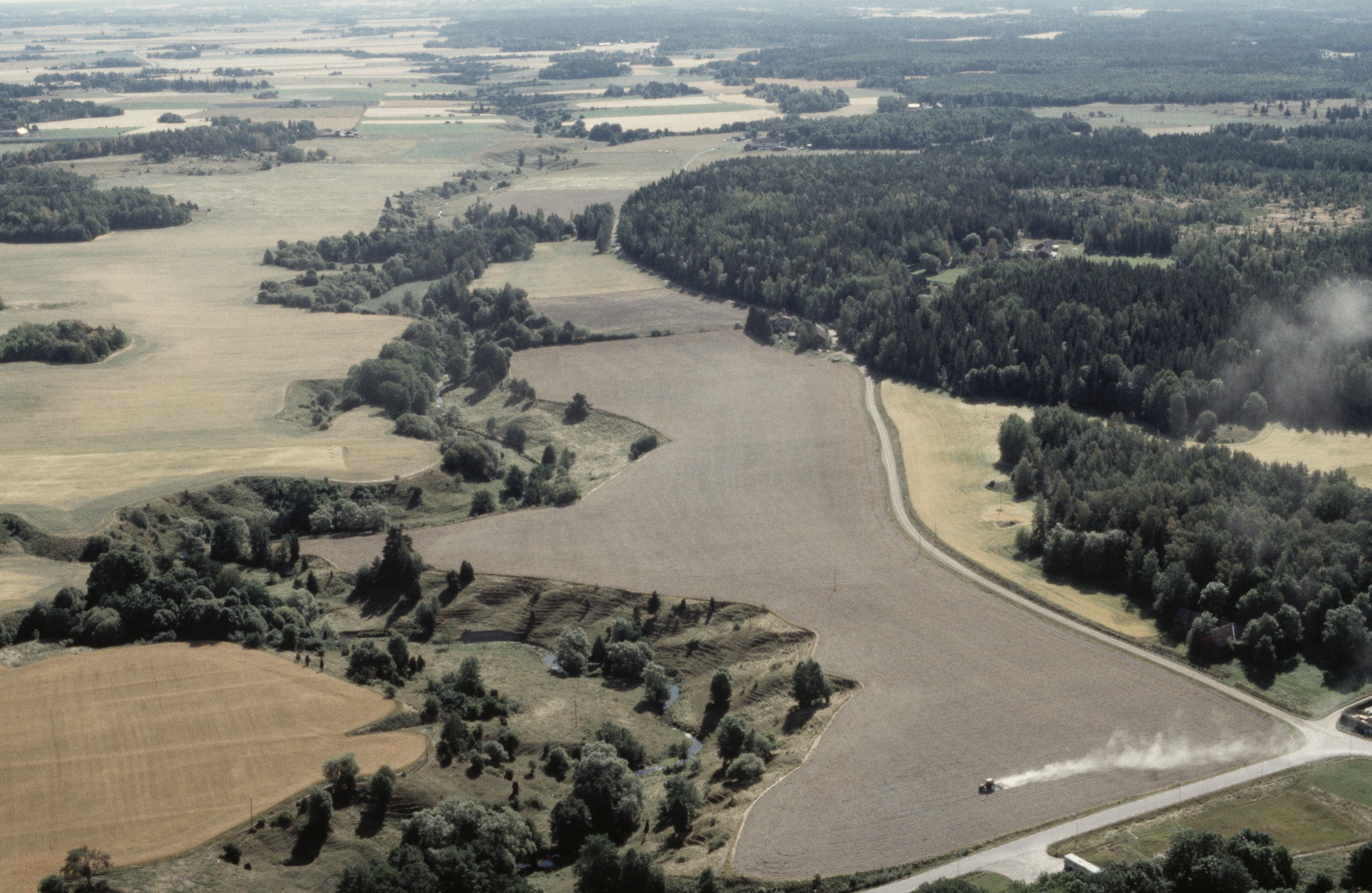 Beskrivning: Jumkilsån öster om Jumkils kyrka. I bildens övre del socknen Åkerby och Börje. Bilden är tagen mot (väderstreck): SSO