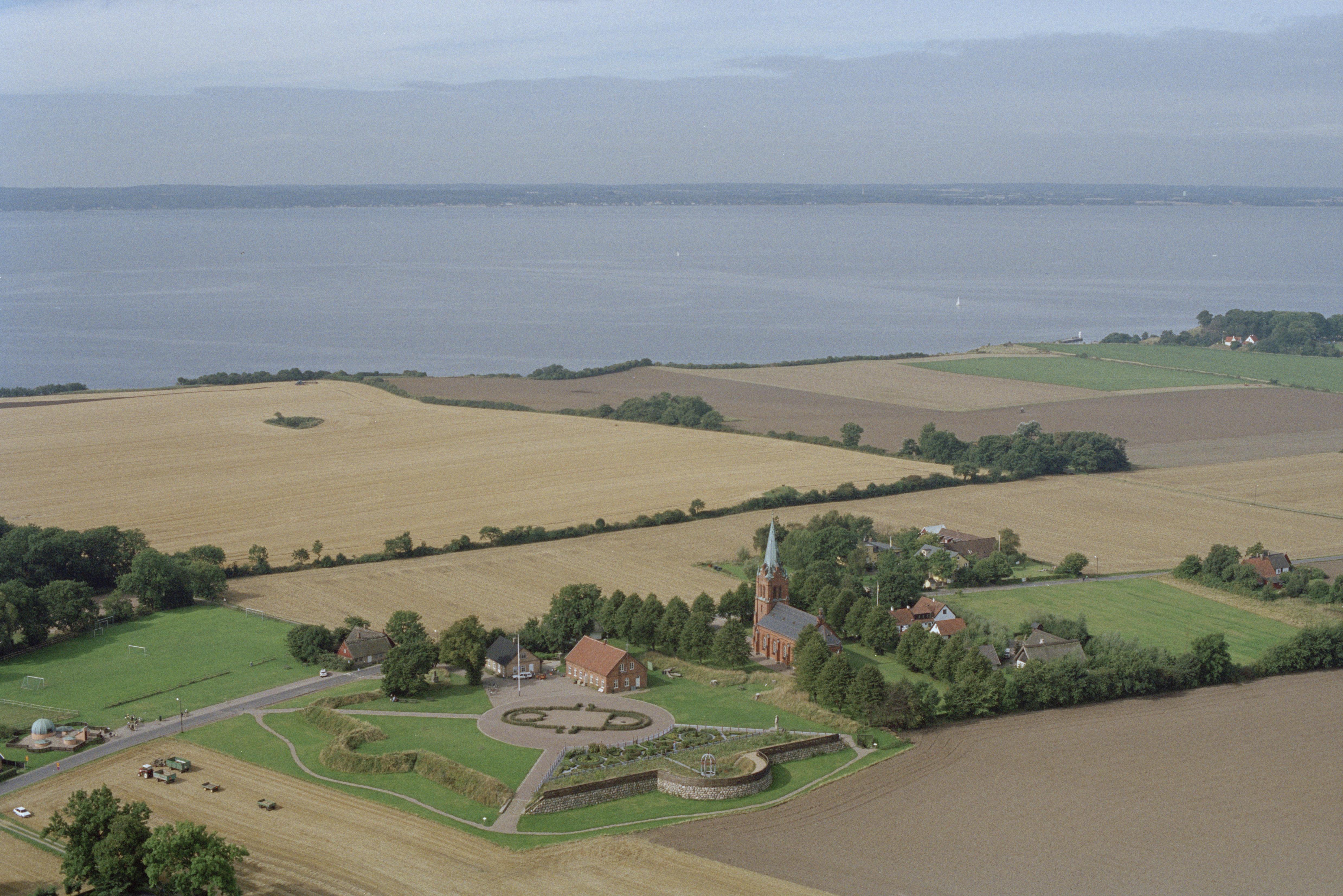 Beskrivning: Sankt Ibbs nya kyrka. Ruiner efter Tycho Brahes slott Uranienborg och observatorium Stjärneborg RAÄnr Sankt Ibb 29:1. Bilden är tagen mot (väderstreck): V