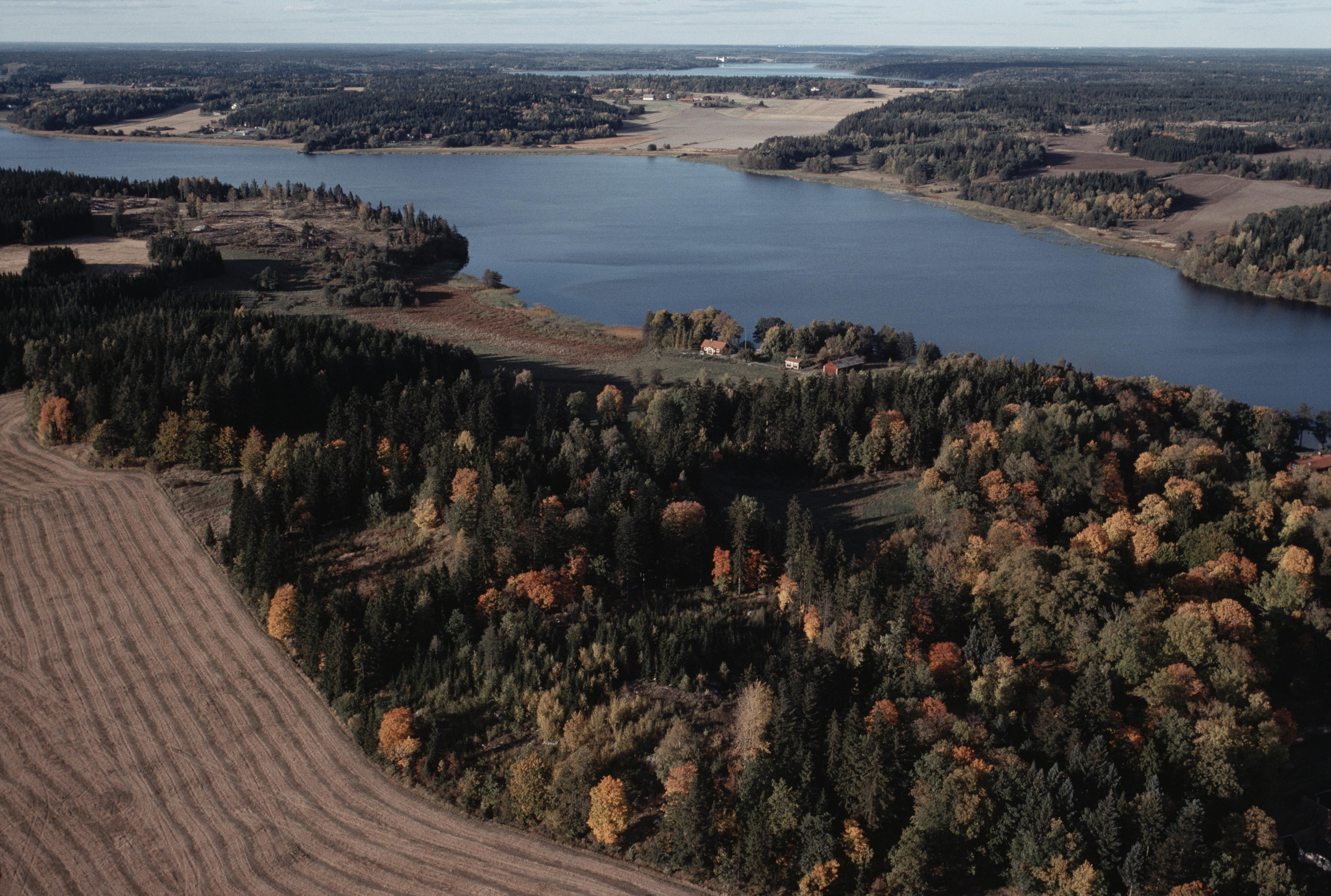 Beskrivning: Håtunaviken i Mälaren. Viken markerar gränsen mellan socknen Håtuna och Sankt Per (uppe till höger). Signhildsbergs kungsgård med husgrund Fornsigtuna RAÄnr Håtuna 101:1, gravfält Håtuna 99:1 m.fl. Bilden är tagen mot (väderstreck): N