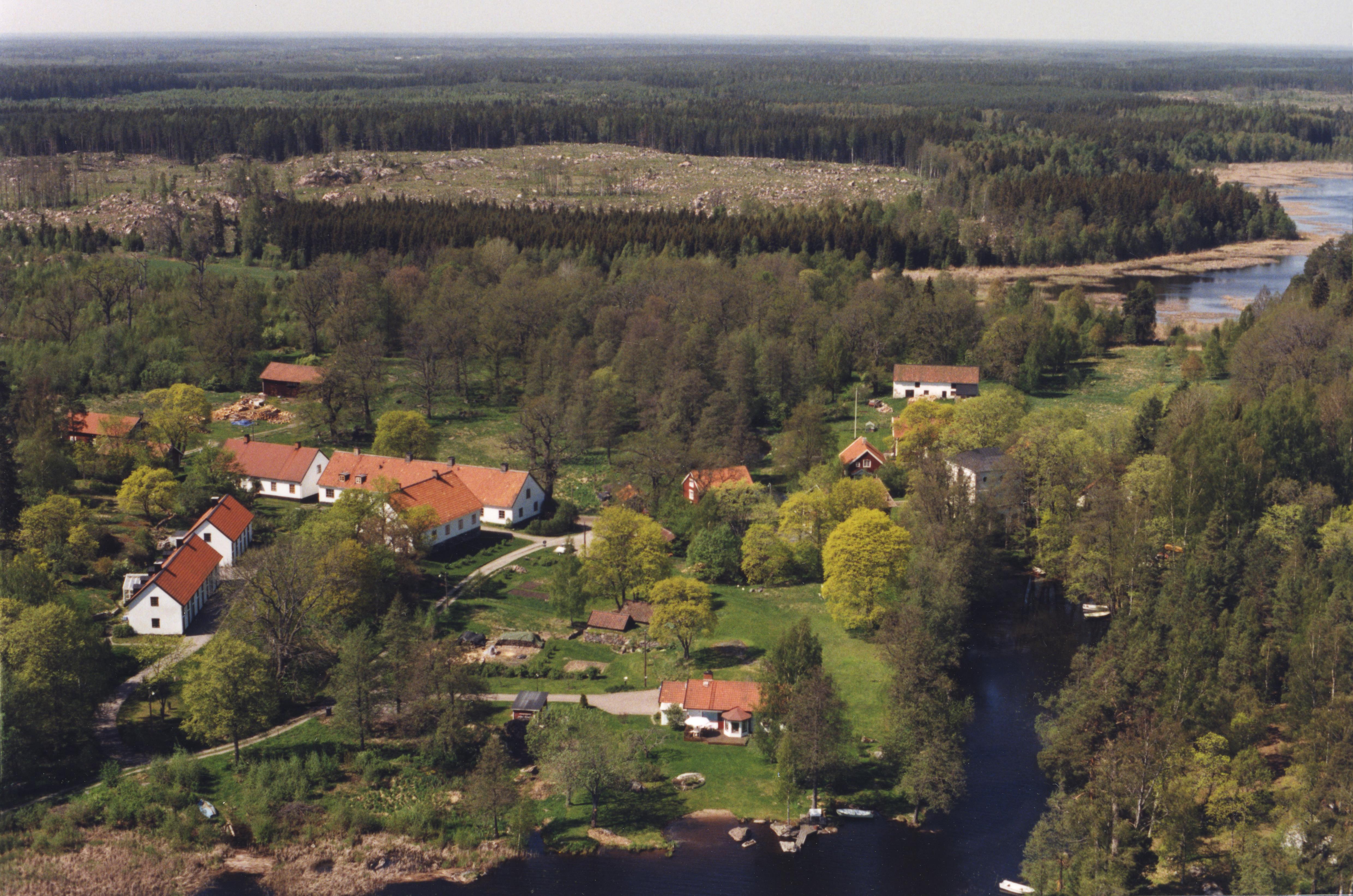 Beskrivning: Vällnora bruk vid Upplandsleden mellan sjöarna Svartviken (i bildens nedre del) och Vällnoren (i bildens övre del). Hytt- och hammarområden RAÄnr Knutby 111:1. Bilden är tagen mot (väderstreck): VNV