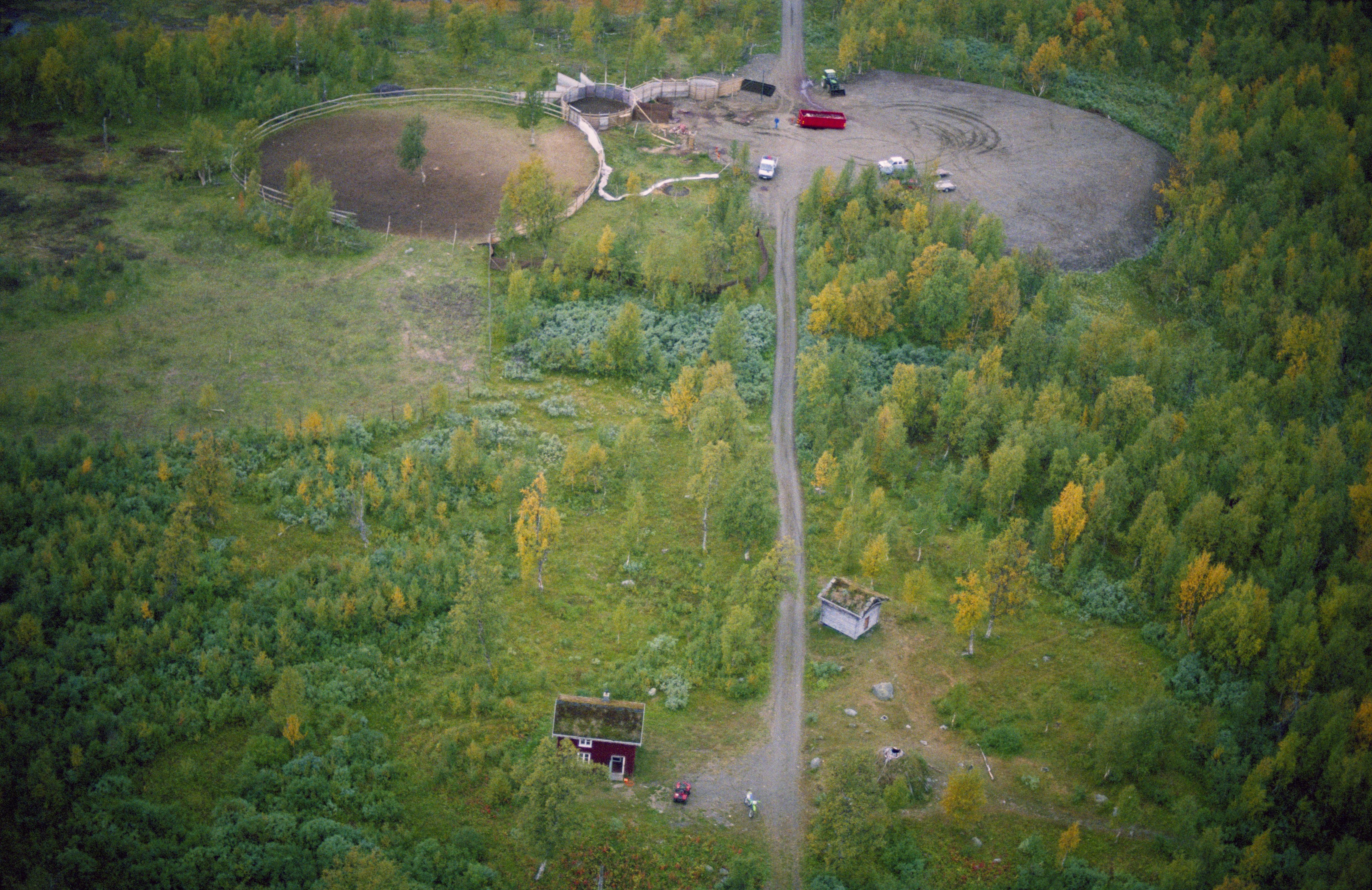 Beskrivning: Samisk kulturmiljö på och vid fjället Atoklimpen (Aatoeklibpie / Atoklinten), väster om Atofjället. I bildens nedre del Atostugan (RAÄnr Tärna 665:1) - en timmerstuga inom området för samebyn Vapsten. Ett rengärde i bildens övre del. Området Atoklimpen är kulturreservat sen 2005. Bilden är tagen mot (väderstreck): NV