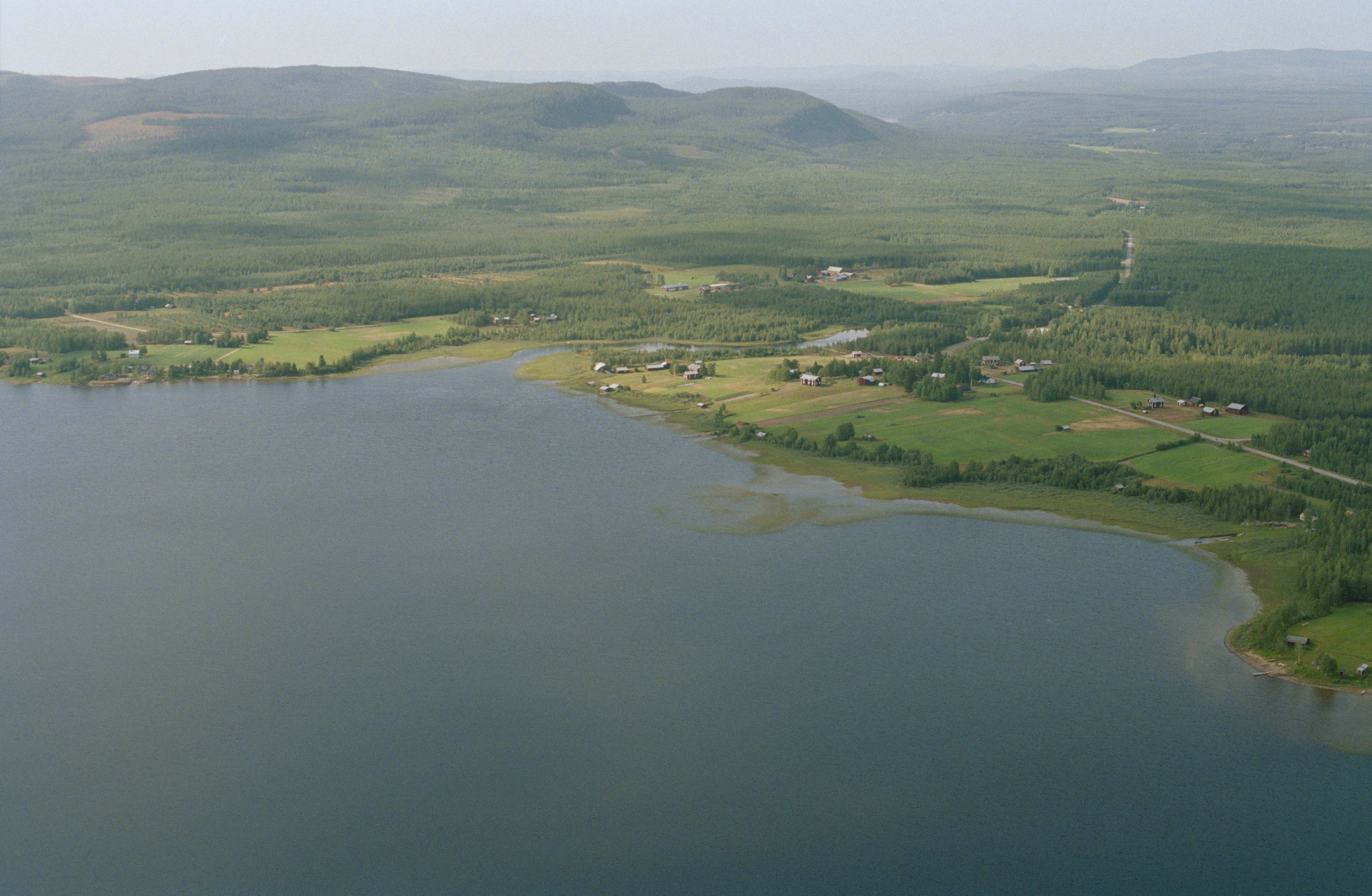 Beskrivning: Över bildens mitt Manjärvs by vid Vistån i norra delen av sjön Manjärv. I byn bytomt RAÄnr Älvsby 906:1-2. Bilden är tagen mot (väderstreck): NV