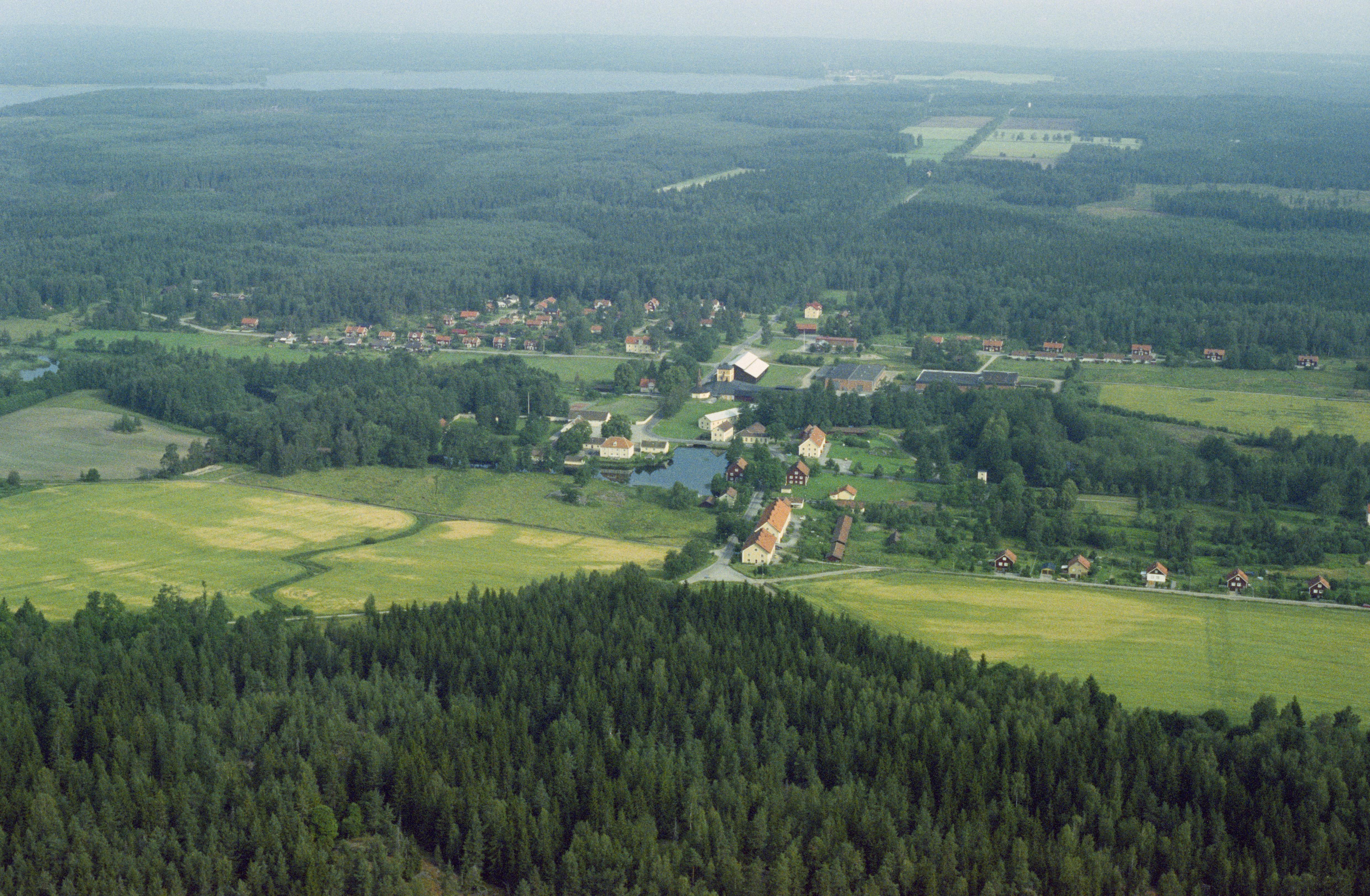 Beskrivning: Brevens bruk, hytt- och hammarområde RAÄnr Asker 258 vid Brevensån och sjöarna Botaren och Sottaren. Brevens kyrka till höger om bildens mitt. Bilden är tagen mot (väderstreck): NV