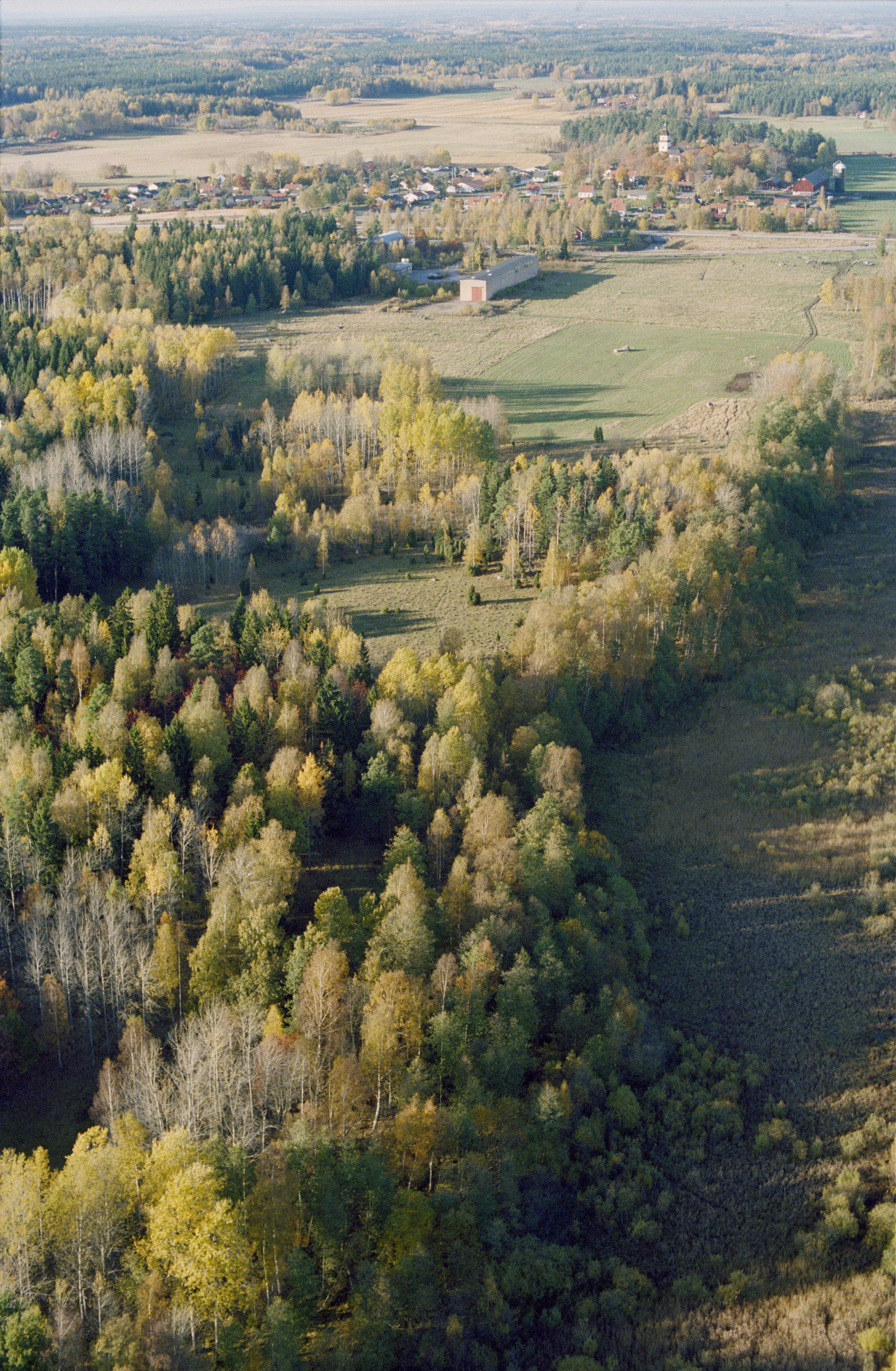 Beskrivning: Hastasjön RAÄnr Götlunda 280:1. Sjön blev sänkt på 1860-talet och är torrlagd. I bildens övre del Götlunda kyrka och kyrkby. Bilden är tagen mot (väderstreck): NNV