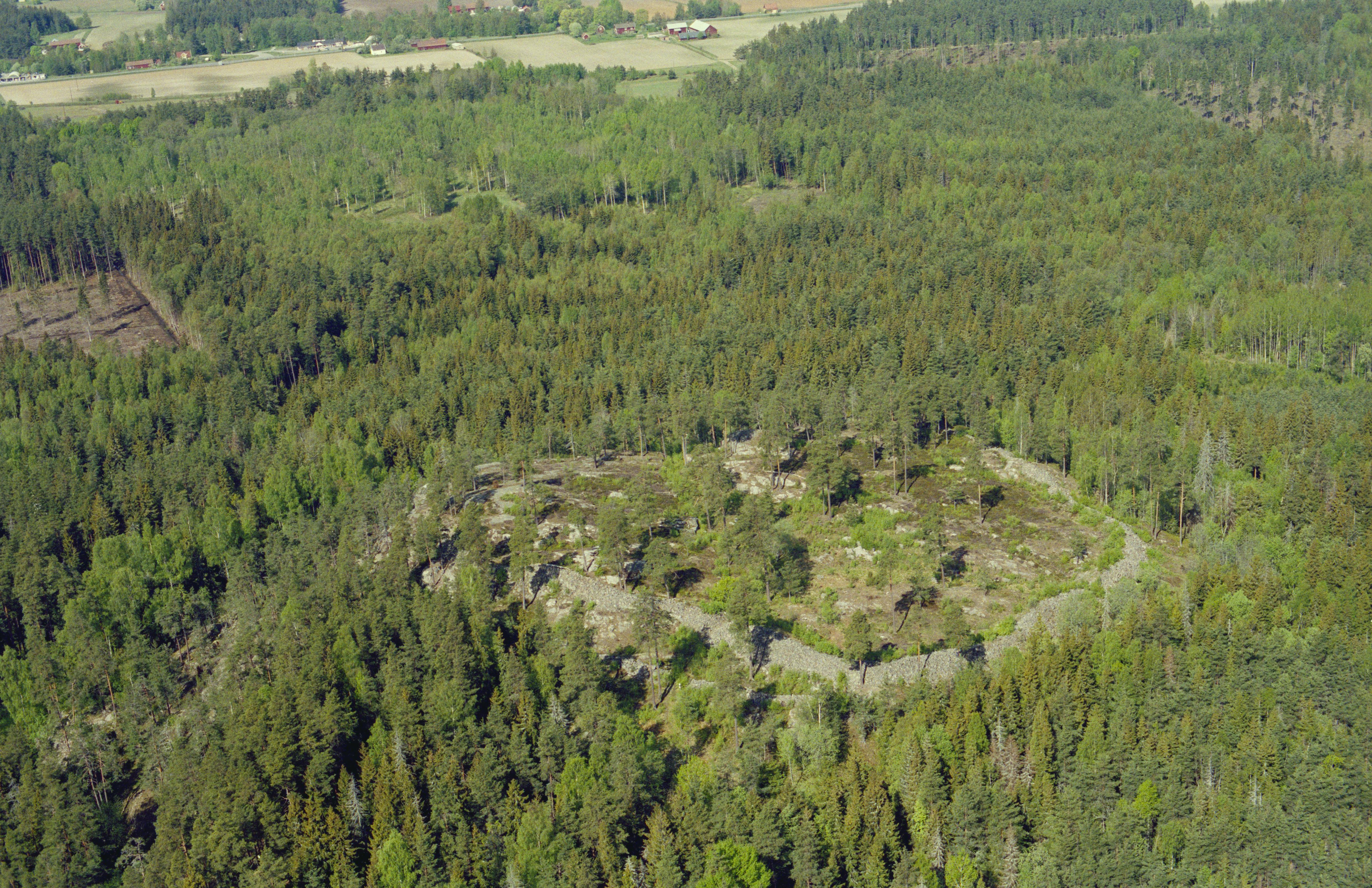 Beskrivning: Tarsta berg fornborg (skrivs även Tarstaborg) RAÄnr Sköllersta 27:1. Bilden är tagen mot (väderstreck): VNV