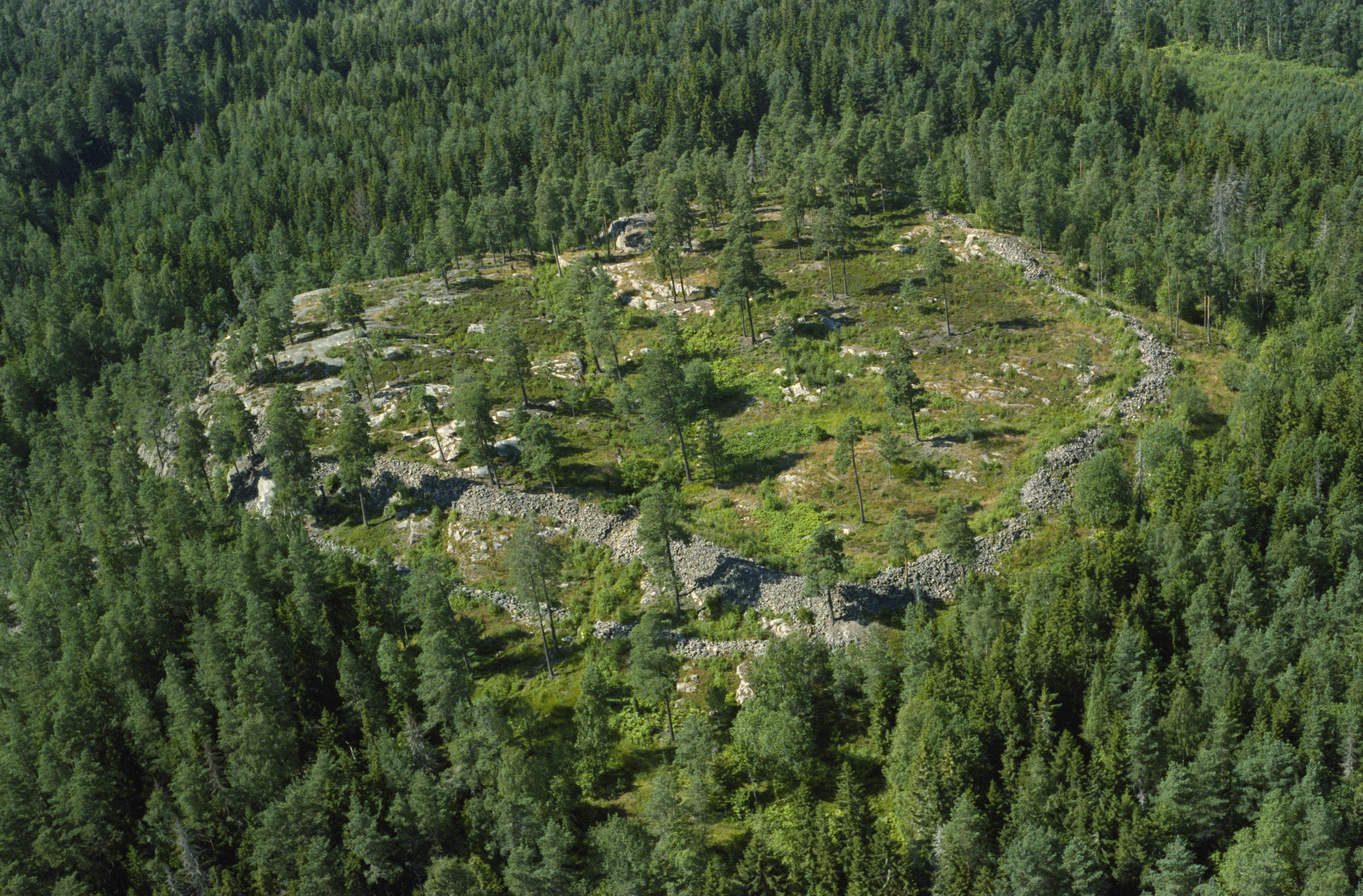 Beskrivning: Tarsta berg fornborg (skrivs även Tarstaborg) RAÄnr Sköllersta 27:1. Bilden är tagen mot (väderstreck): VNV