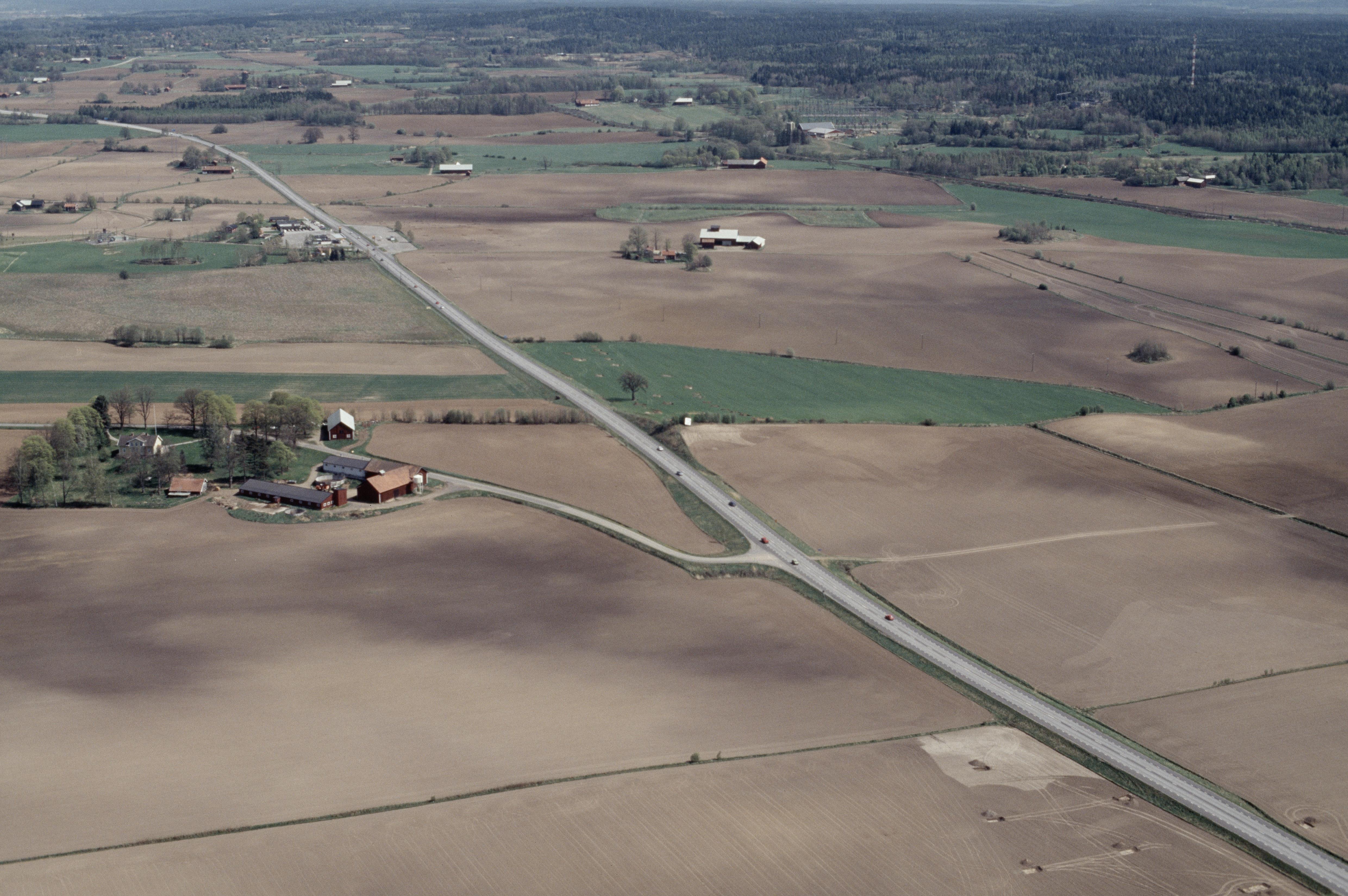 Beskrivning: Arkeologisk undersökning innan vägbygge av E3 / E20 sydost om Vibysjön. Gravfält RAÄnr Viby 218:1 vid bildens mitt. Bilden är tagen mot (väderstreck): SO
