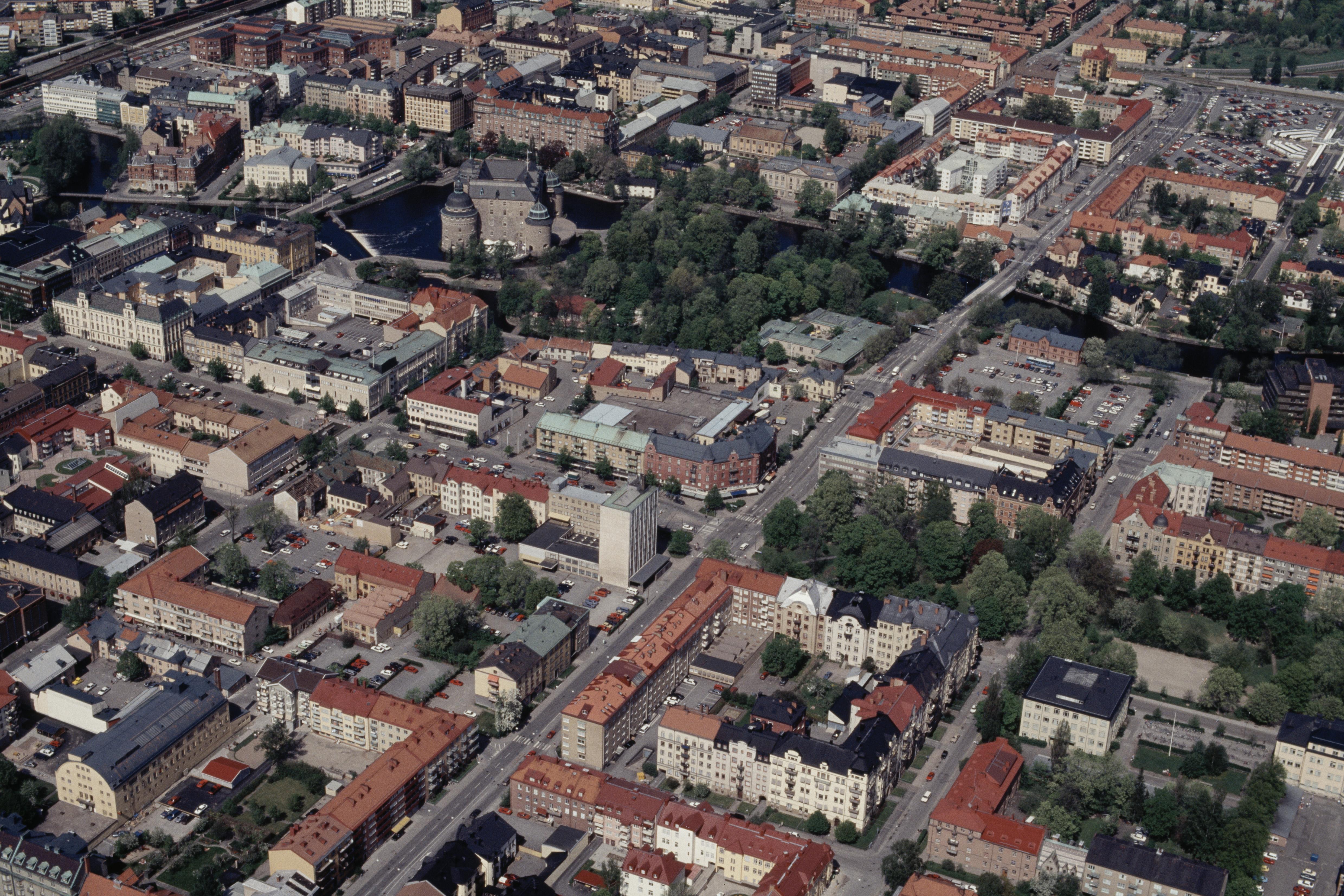 Beskrivning: Svartån i Örebro stad. Örebro slott till vänster i bildens övre del. Bilden är tagen mot (väderstreck): N