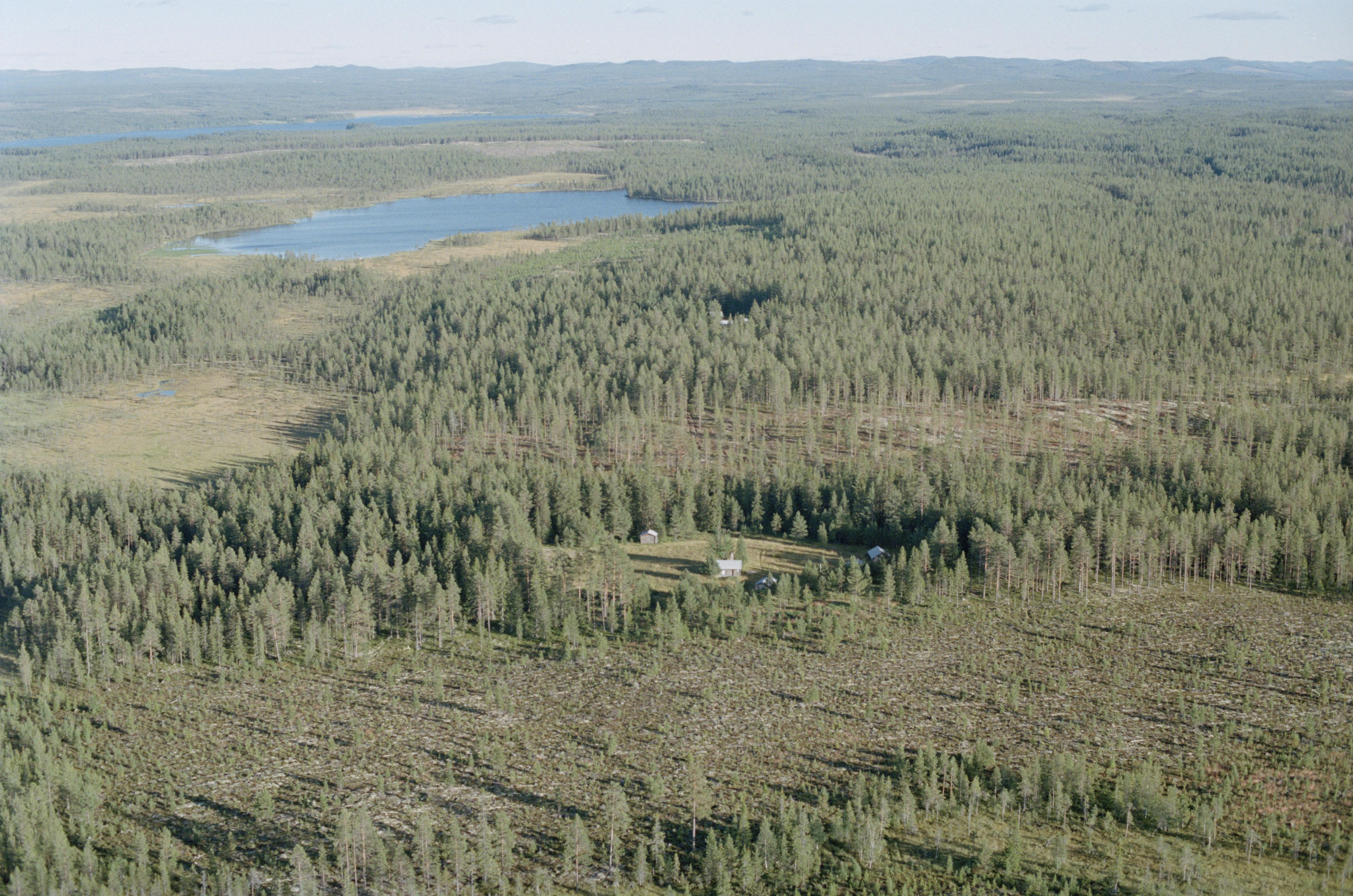 Beskrivning: I bildens nedre del området sydväst om Sätteltjärnen (ej i bilden). Vid bildens mitt norra delen av fäbodområdet Mossebodarna. Uppe till höger södra delen av Mossebodarna vid Galsjön. Bilden är tagen mot (väderstreck): SO