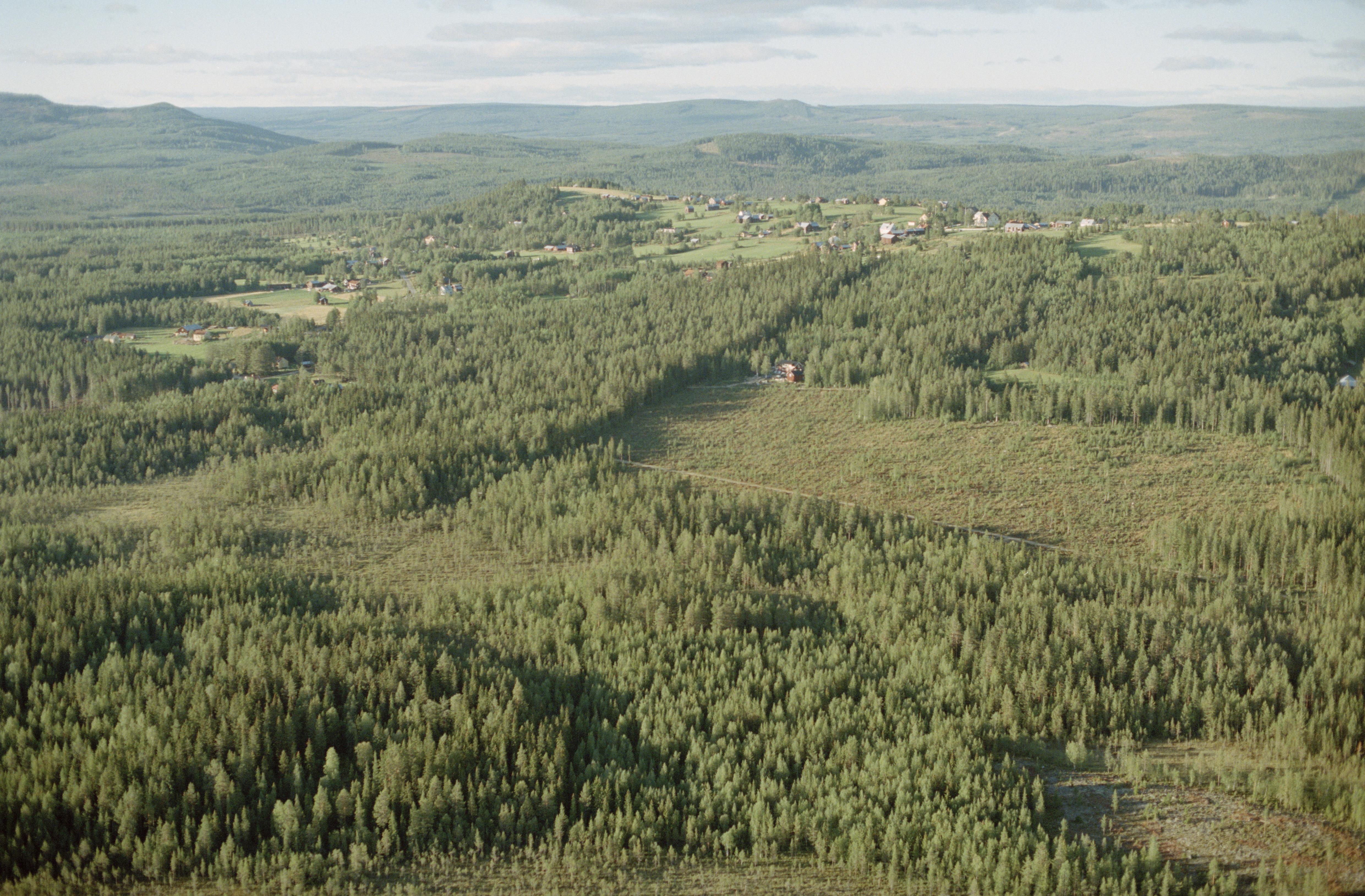 Beskrivning: I bildens övre del Ytterberg by och berg. I byn bytomt RAÄnr Sveg 1400, 1406, 1415, 1419, m.fl. Bilden är tagen mot (väderstreck): N