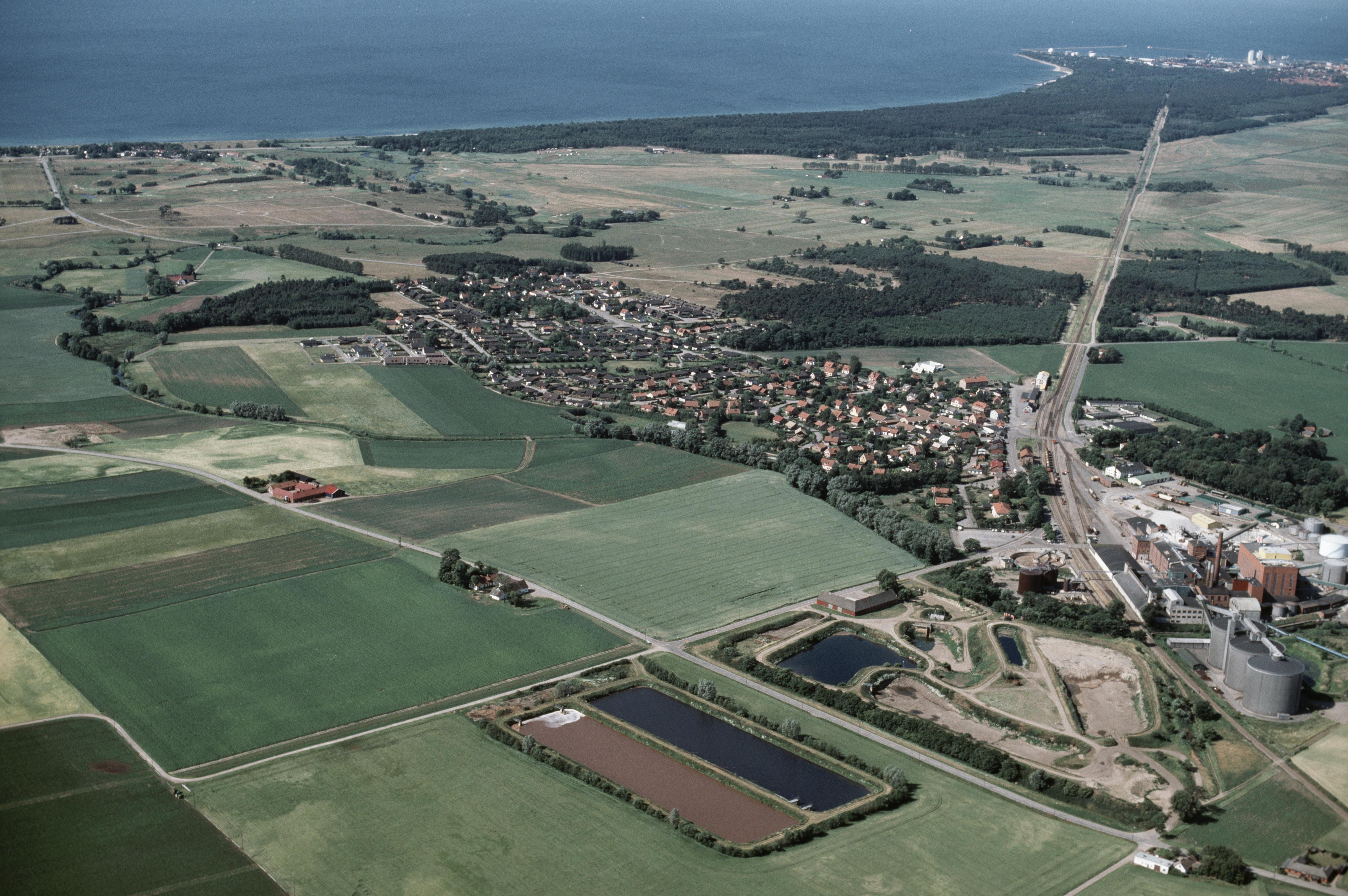 Beskrivning: Köpingebro tätort. Bilden är tagen mot (väderstreck): VSV