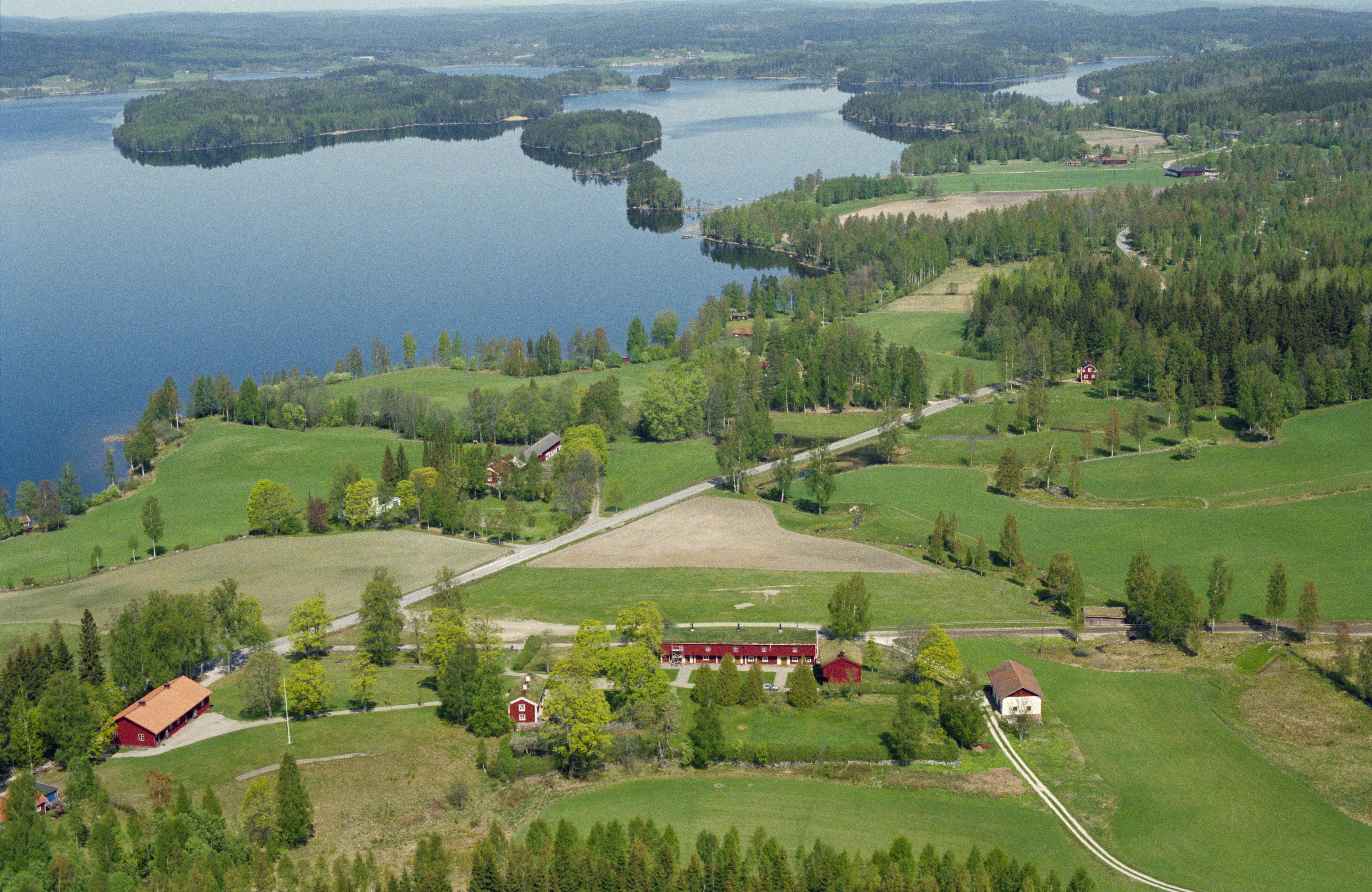 Beskrivning: Siggebohyttans bruk vid sjön Usken. Under bildens mitt byggnadsminnet Siggebohyttans bergmansgård RAÄnr Linde 24:1. Vid bildens mitt hyttområde Linde 11:1. Bilden är tagen mot (väderstreck): N