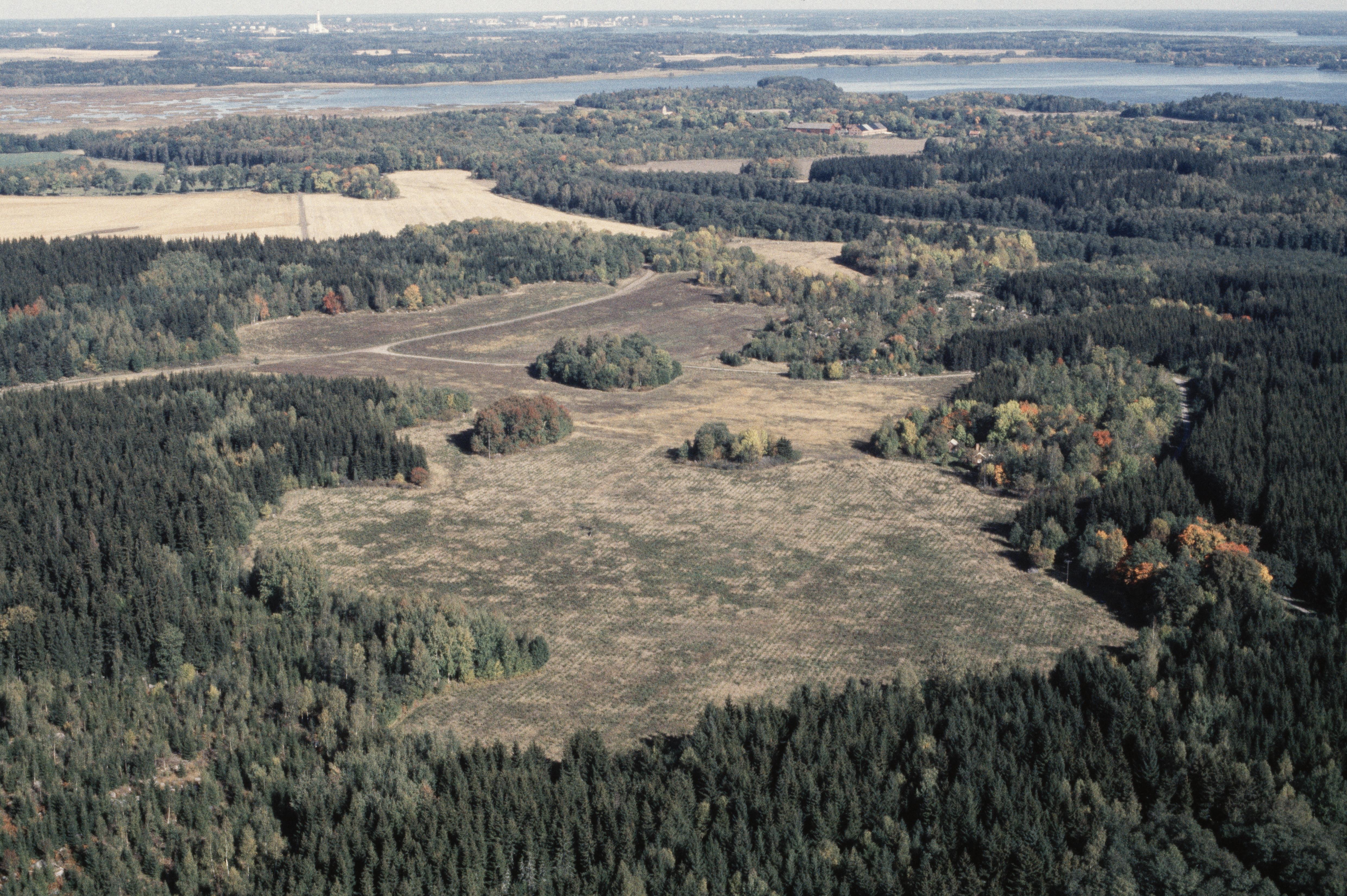 Beskrivning: Igenväxande åker vid torpen Karlslund och Erikslund i området Tärnö. Över bildens mitt Boda gamla tomt RAÄnr Rytterne 113:1 vid Boasjön. I bildens övre kant Tidö naturreservat vid Asköfjärden i Mälaren. Bilden är tagen mot (väderstreck): N