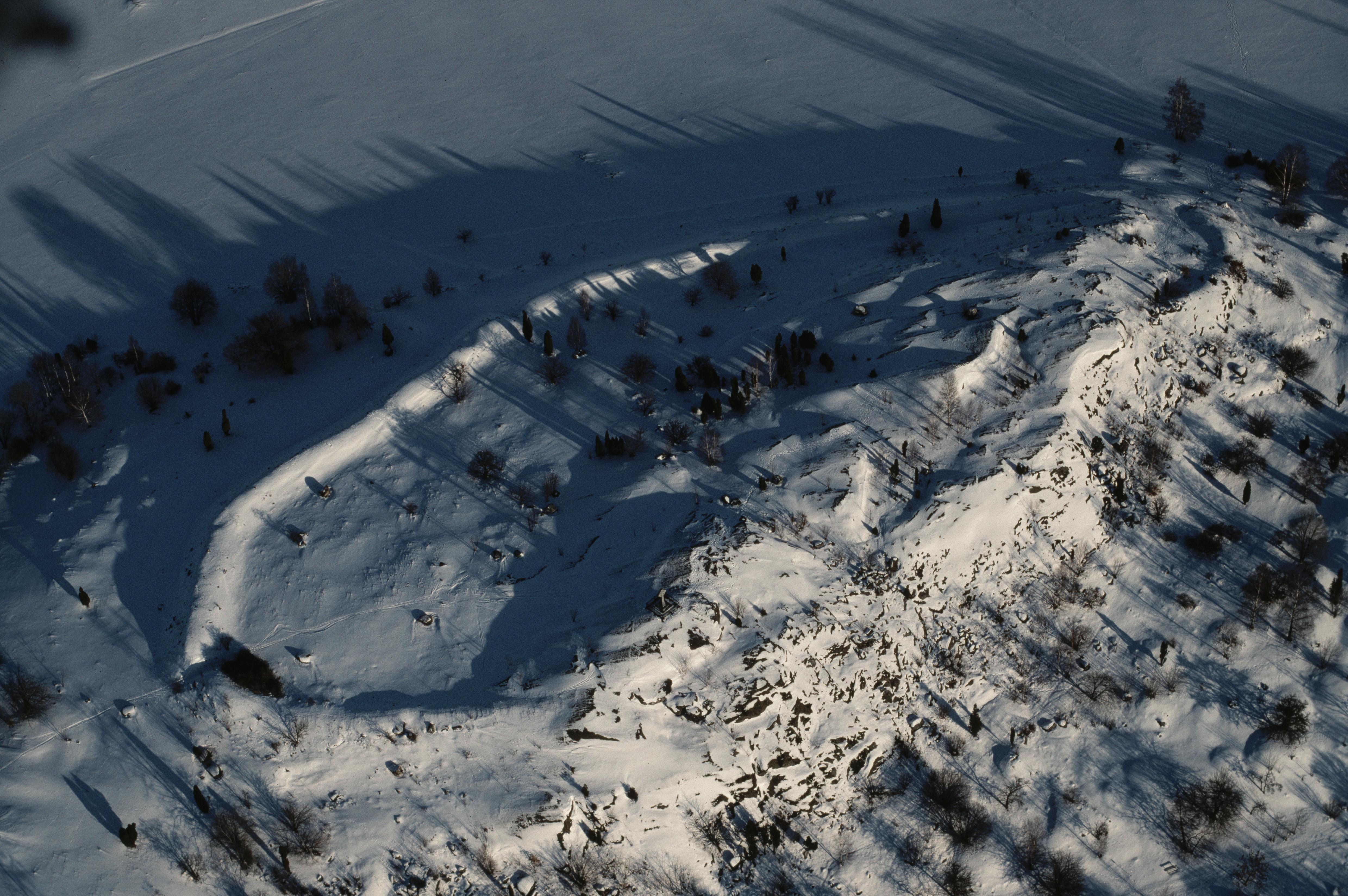 Beskrivning: Fornlämningsområdet Birka på Björkö i Mälaren. Fornborg Borg RAÄnr Adelsö 34:1. Till höger gravfält Borgs hage RAÄnr Adelsö 35:1. Bilden är tagen mot (väderstreck): Ö