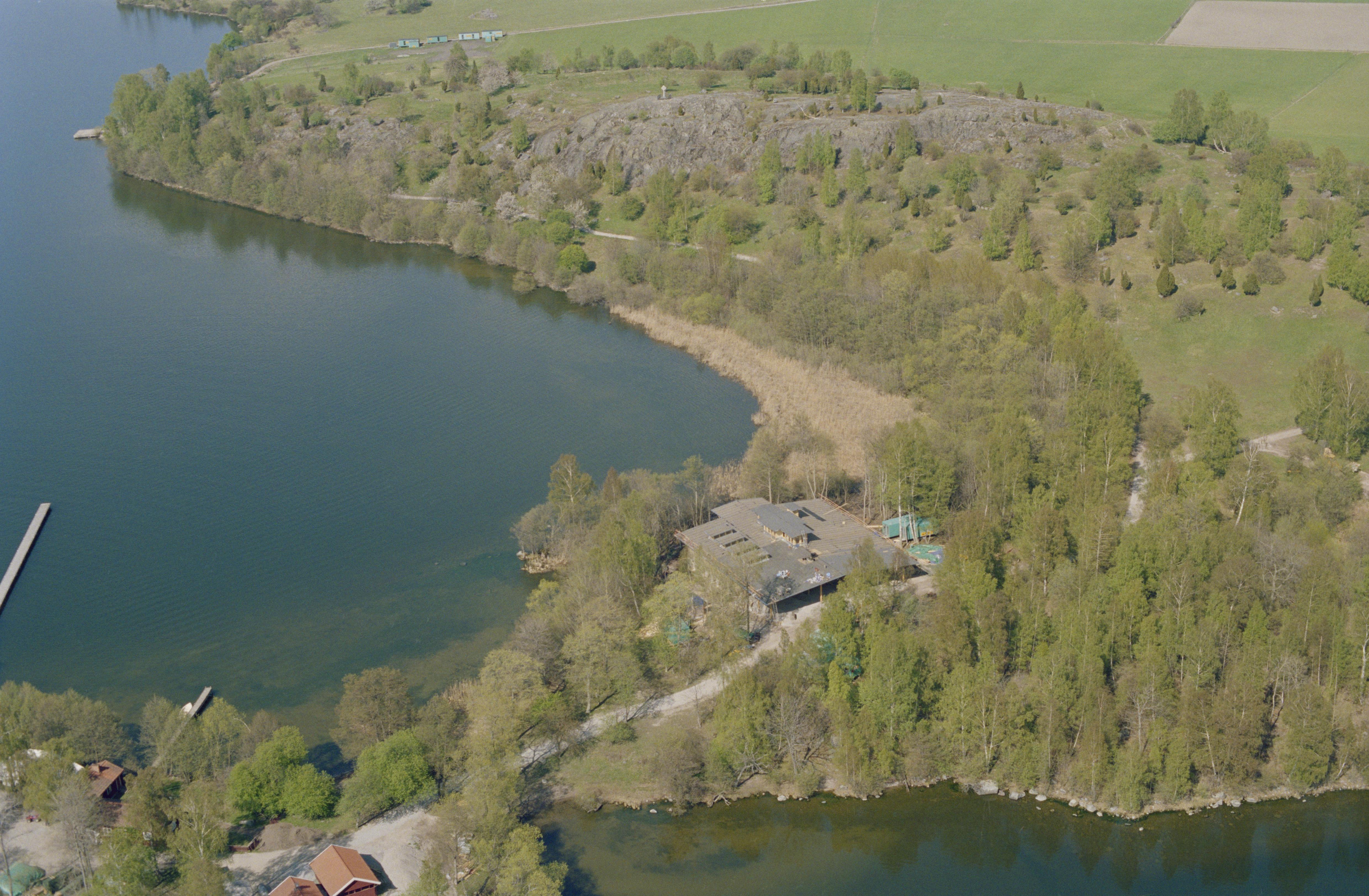 Beskrivning: Fornlämningsområdet Birka på Björkö i Mälaren. Ångholmen, Birka Museum, fornborg Borg RAÄnr Adelsö 34:1, Ansgarsmonumentet, m.fl. Bilden är tagen mot (väderstreck): NNO