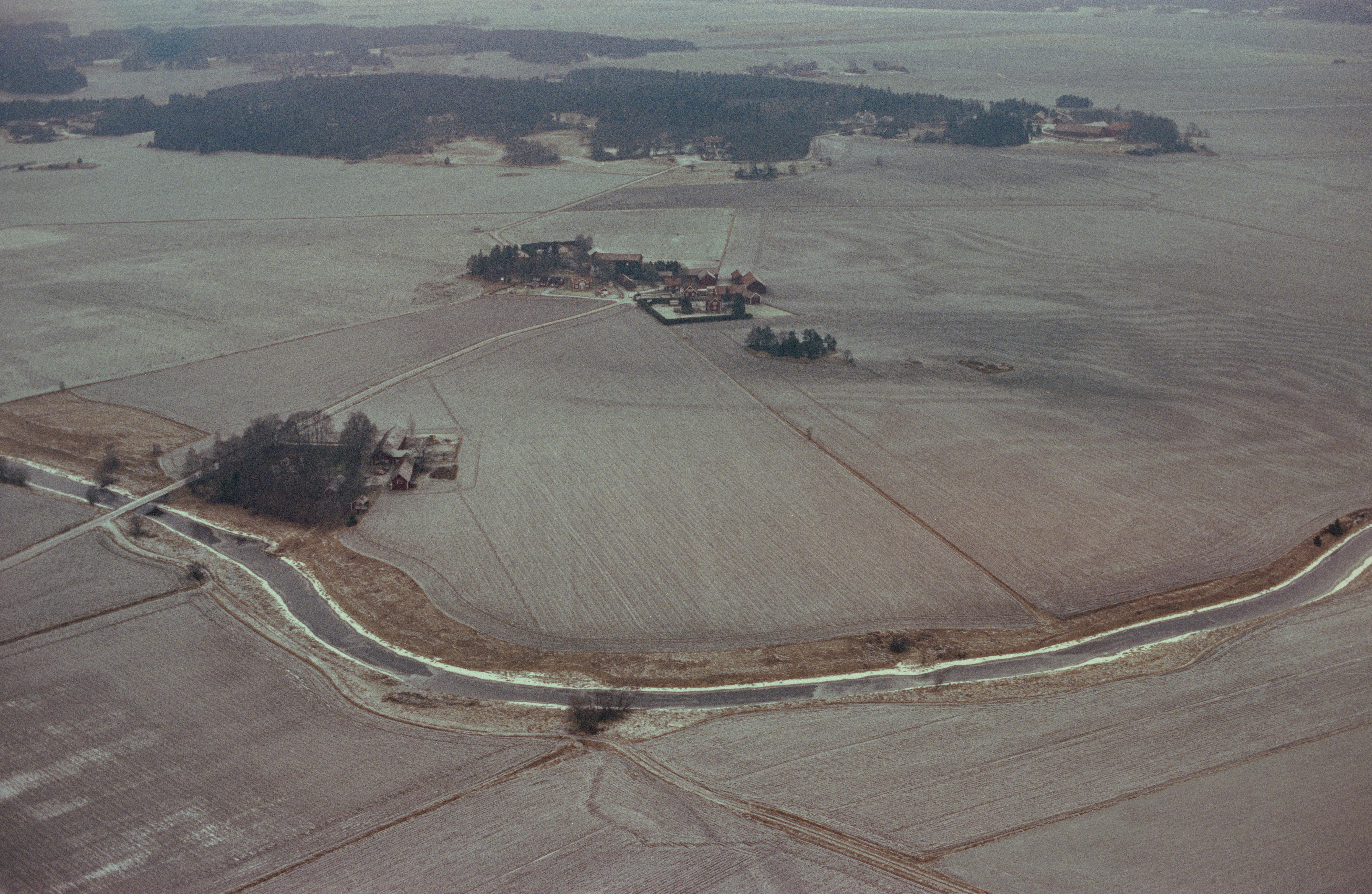 Beskrivning: Edeby gård över bildens mitt. På västsidan av gården stensättning RAÄnr Danmark 96:1. I bildens nedre del Sävjaån som till dels markerar gränsen mellan socknen Danmark (bildens vänstra och övre del) och Lagga (nere till höger). I bildens övre del gården Linnés Hammarby. Bilden är tagen mot (väderstreck): N