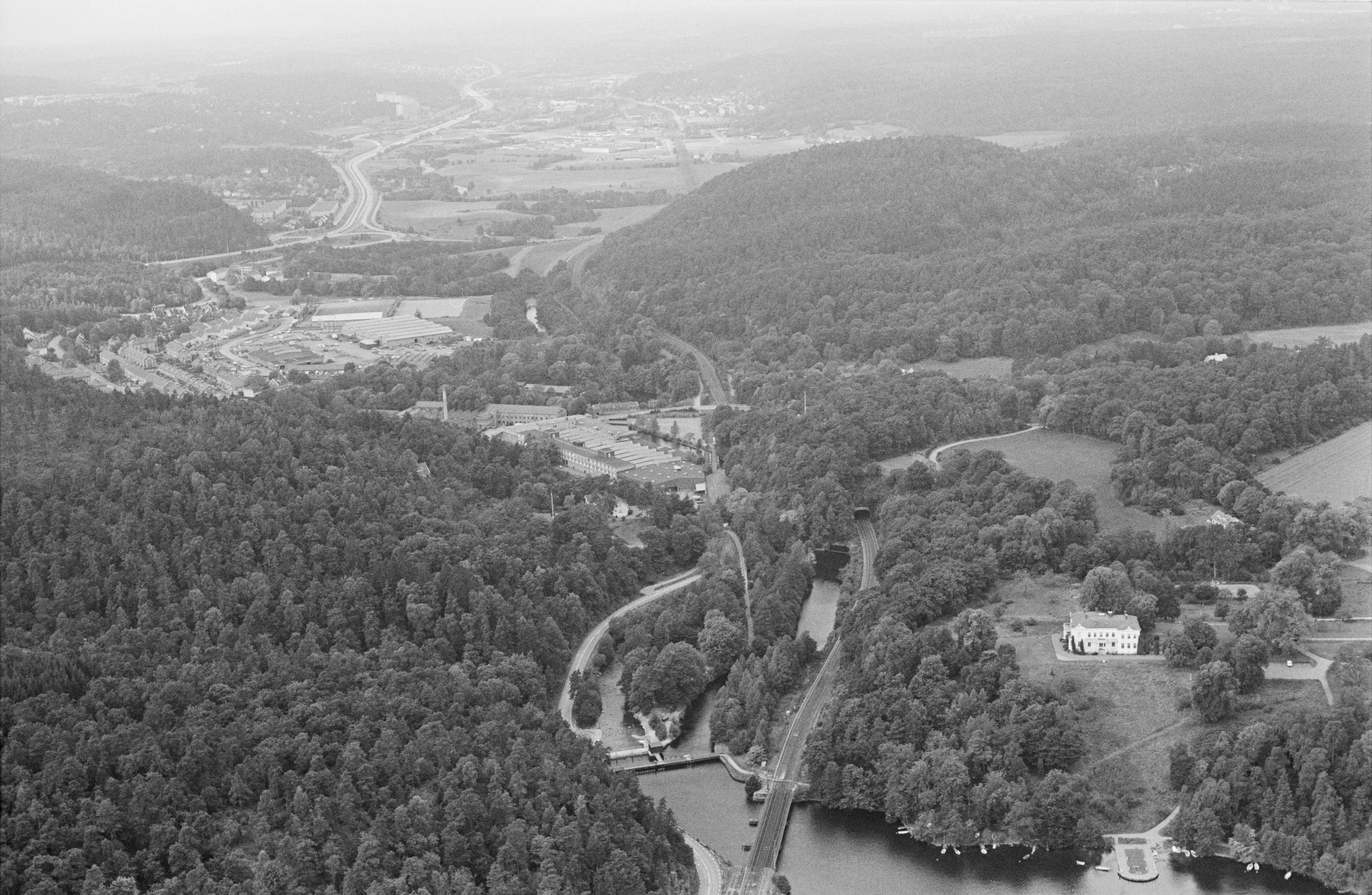 Beskrivning: Anmärkning (övrig): Riksintresse-nr/namn: O35 - Jonsered. Socken: Partille. Motivering: Industrimiljö av brukskaraktär vid vattendrag och järnväg, utformad under 1800-talet och det tidiga 1900-talet i filantropisk anda, med välbevarad industri- bostads- och institutionsbebyggelse uppförd enligt fast plan till ett mönstersamhälle av brittisk modell. - Uttryck för riksintresset: Fabriksholmen med industribebyggelse i tegel från ca 1850-1900 bl a kraftverk ritat av Hans Hedlund 1900, industriområde väster om holmen med byggnader främst från 1912-1950. Flerbostadshus och radhusliknande arbetarbostäder i tegel från 1800-talet med strikt rätlinjig 1800-talsplan. Små enfamiljs arbetarbostäder i trä som tillsammans me(…) Texten i detta fält har förkortats vid migrering till e-arkivet. Se filbilagan extra.xml för fullständig information under note_archivist. Beskrivning: Jonsereds tätort vid sjön Aspen. Jonsereds herrgård / säteri nere till höger. Bilden är tagen mot (väderstreck): V Fotosyfte: Flygbildsdokumentation