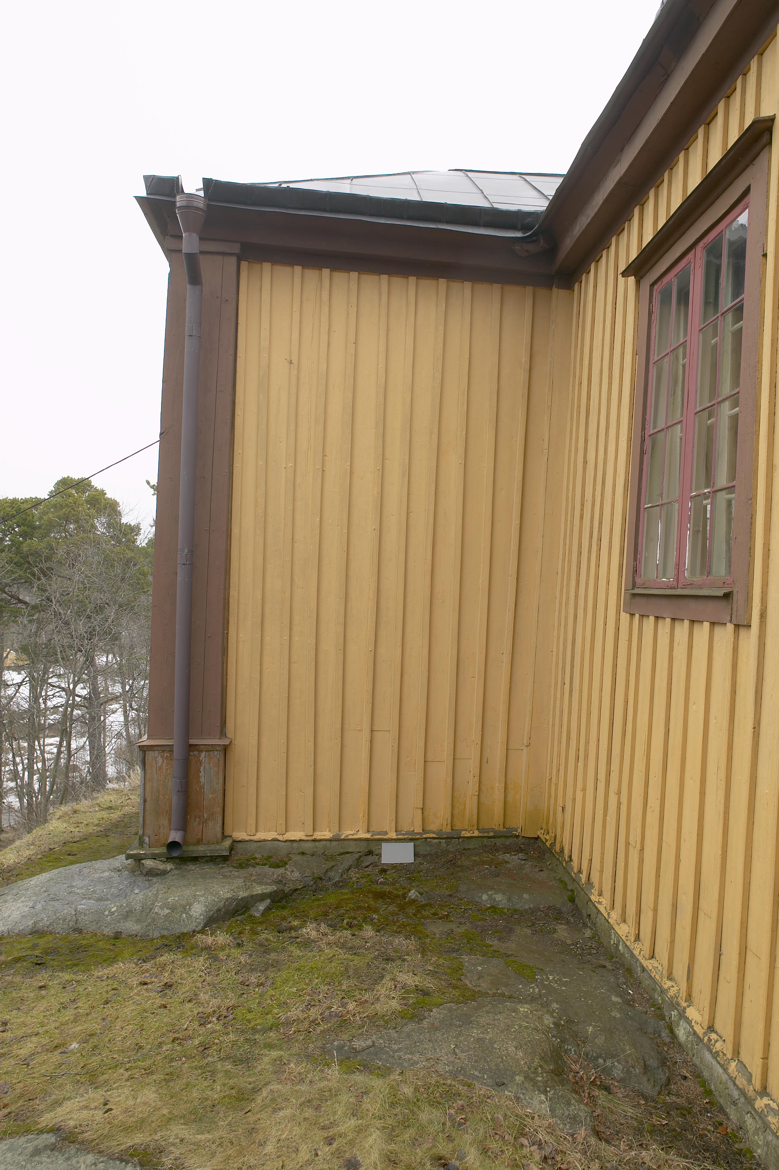 Beskrivning: Del av norra väggen samt sakristian från väster.