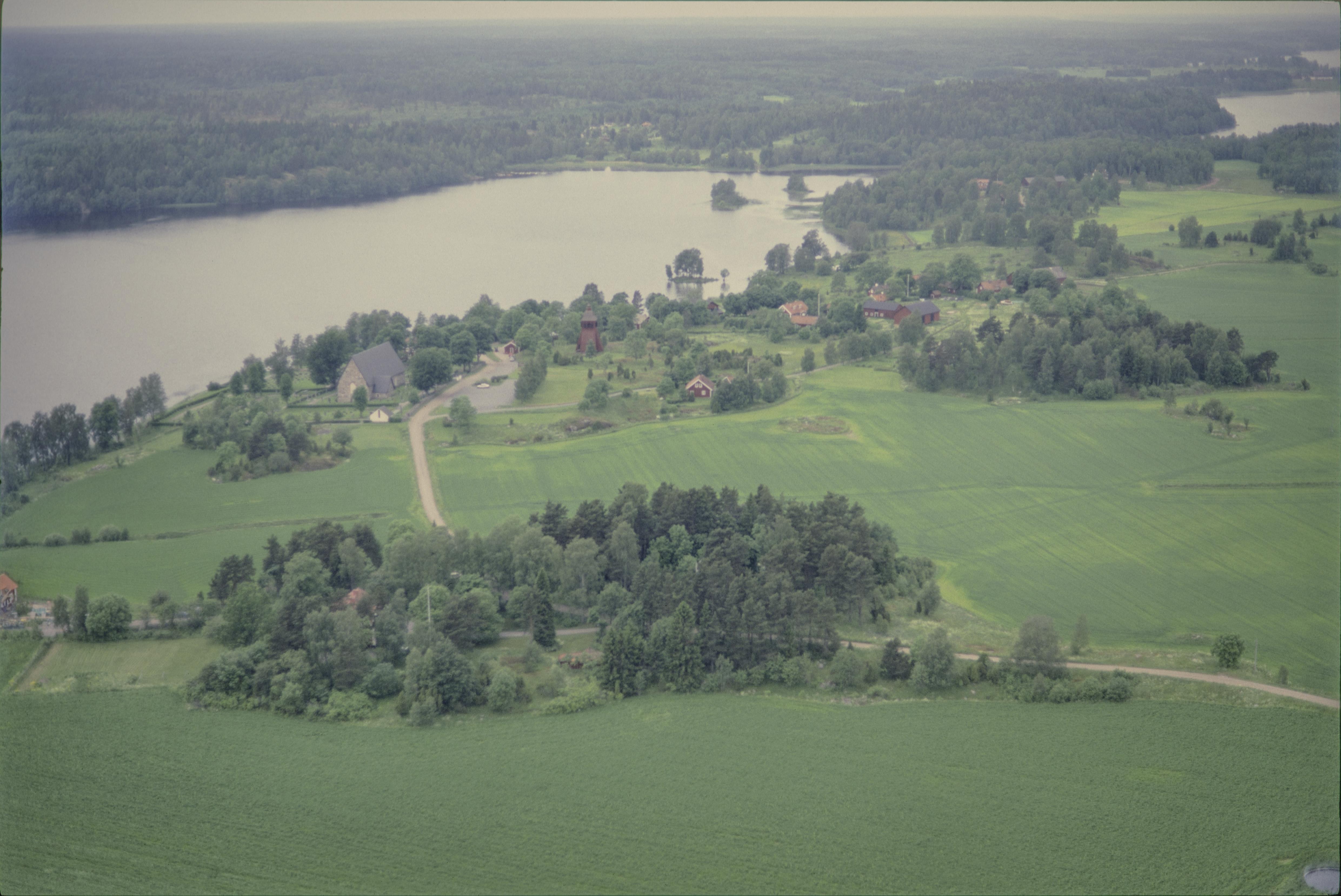 Beskrivning: Länna kyrka och kyrkby vid Länna kyrksjö. Bilden är tagen mot (väderstreck): VSV