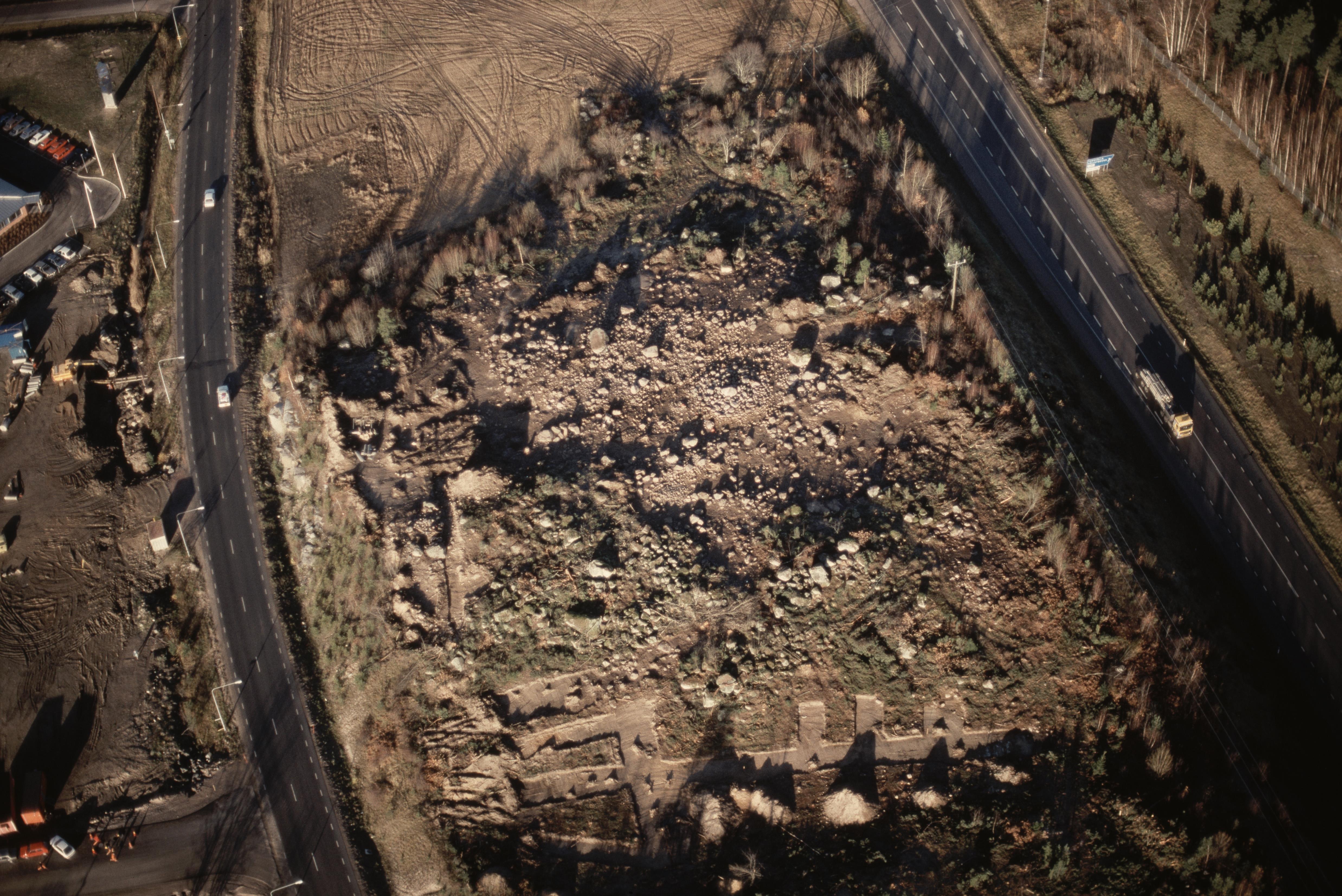 Beskrivning: Folkesta i nordvästra delen av tätorten Hällbybrunn. Vid bildens mitt arkeologisk undersökning av grav- och boplats RAÄnr Torshälla 145:1 innan nybyggnation. Bilden är tagen mot (väderstreck): NV