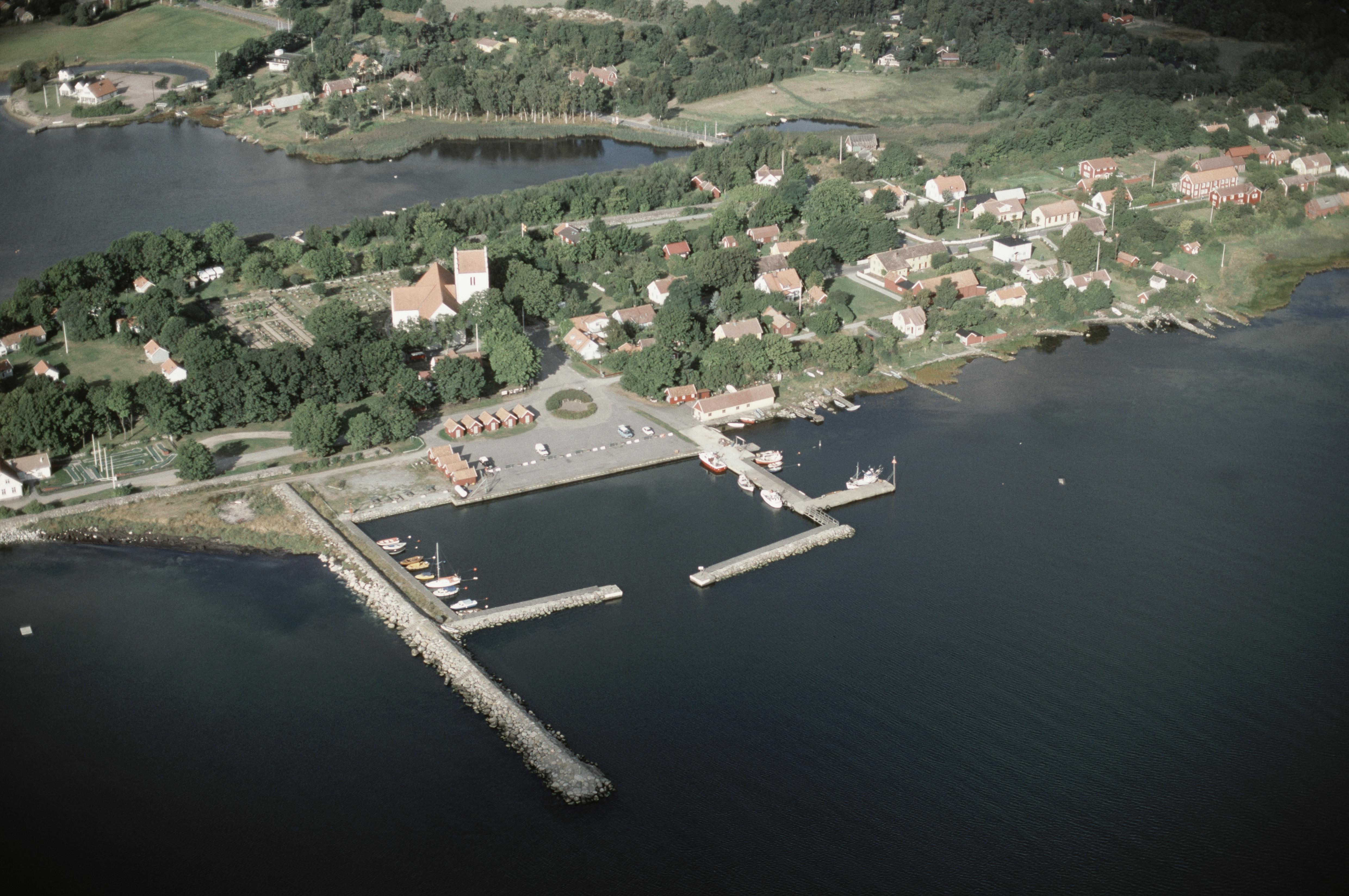 Beskrivning: Kristianopels tätort. Kristianopels kyrka till vänster om bildens mitt. Bilden är tagen mot (väderstreck): V
